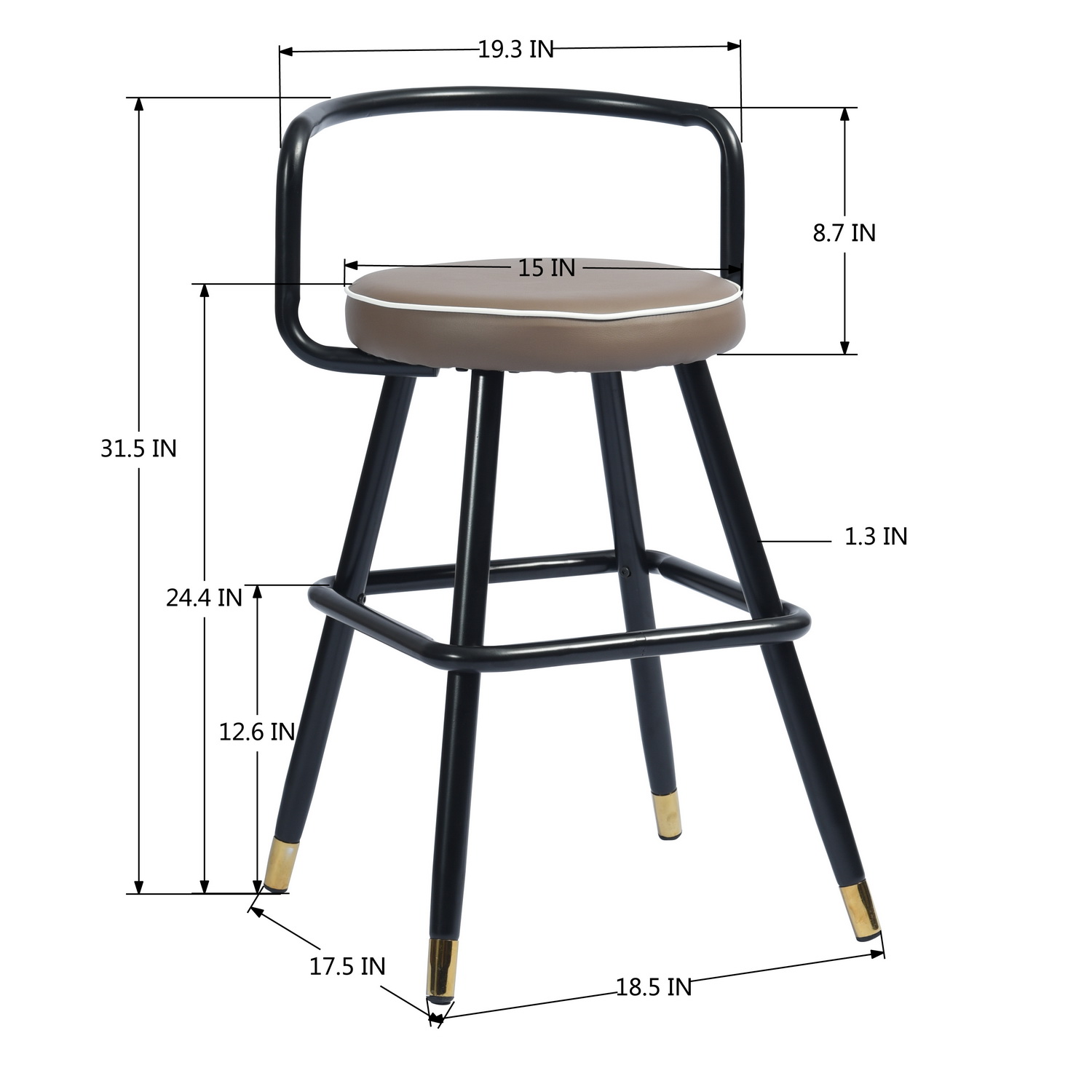 Comfortable enough to sit in for awhile, this set of two 32" black backless counter height bar chairs will transcend the look of your room. A solid black steel frame is finished off with a matching black upholstered seat, giving this chair a chic monotone look. Designed to be good looking and practical, this backless bar chair features a round shaped seat. This stool will look great in your dining room, kitchen, bar, or recreation room. 31.5" H x 18.5" W x 17.5" D