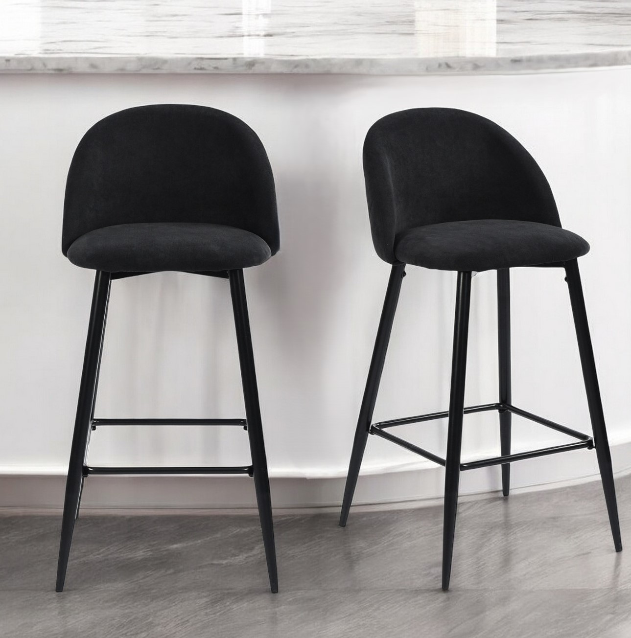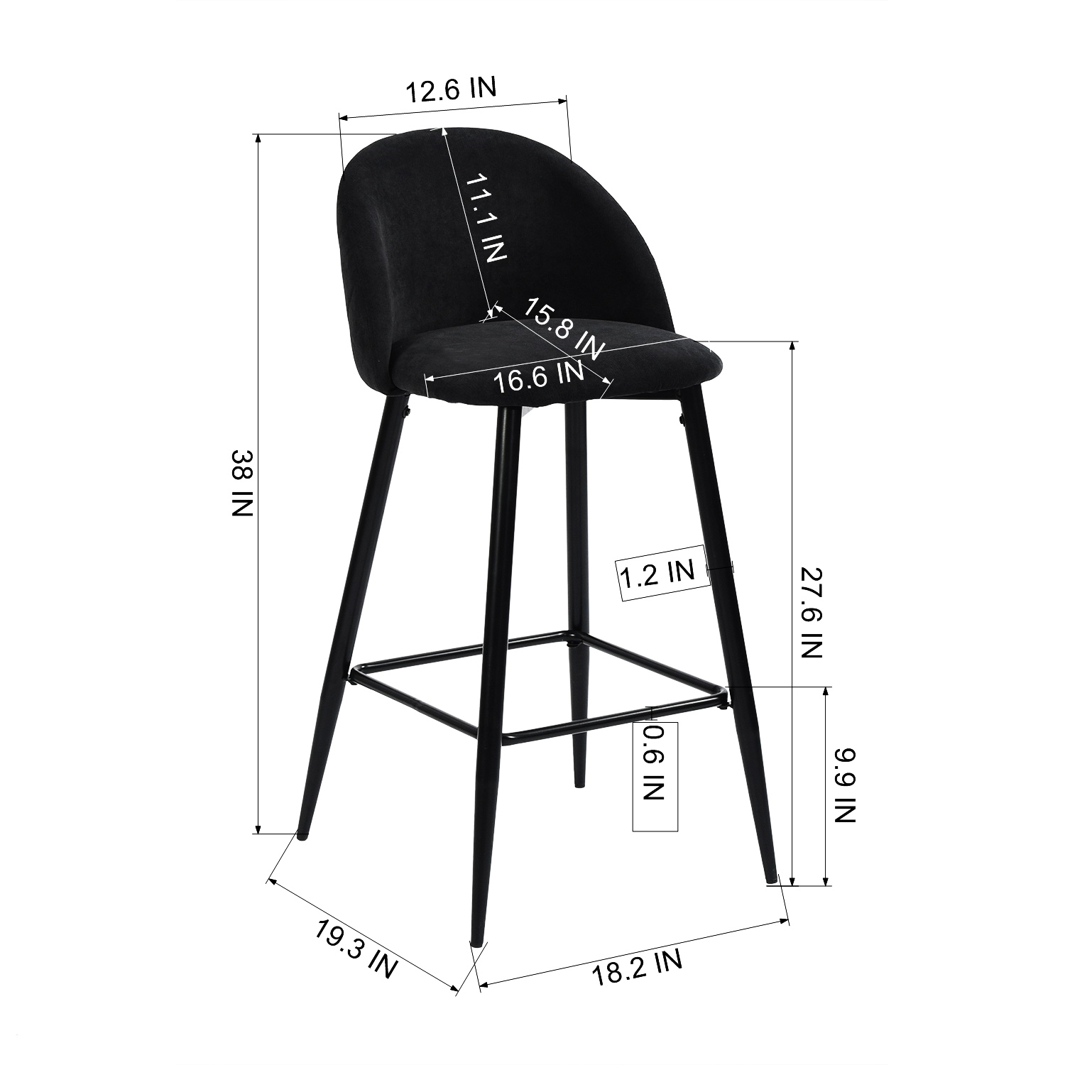 The perfect way to add some extra seating in your home, this set of two 38" blue and black low back counter height bar chairs will elevate the look and vibe of your room. Quality construction from black steel combines with blue fabric to give this stool a fresh and updated look. The square shape of the seat combines with a low back to give this chair a comfortable and fashionable look. This stool will look great in your dining room, kitchen, bar, or recreation room. 37.8" H x 18.1" W x 19.7" D