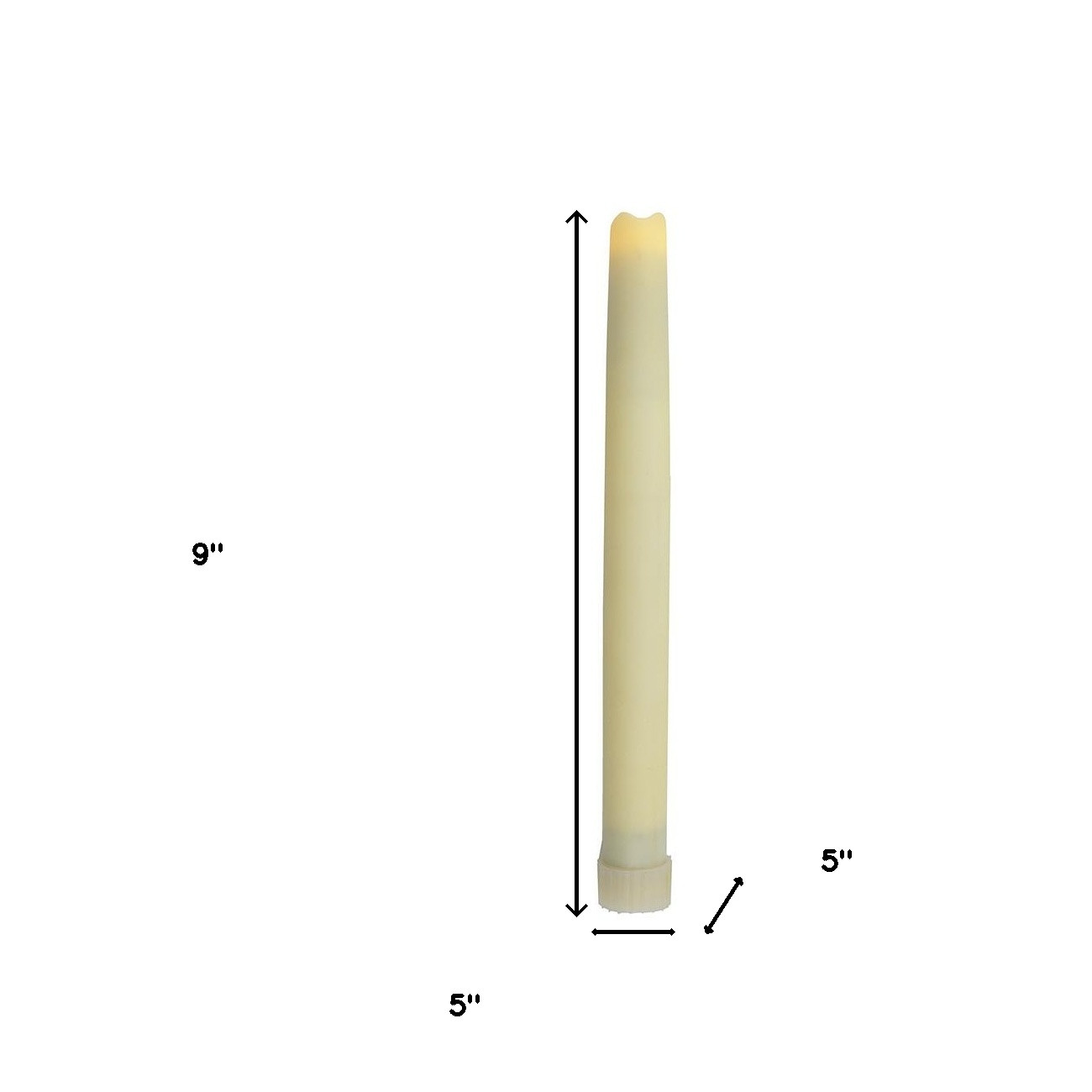 Transform your space with the radiance of this set of two ivory flameless taper candle. The slender form and graceful nature of our tapered candles creates a visual delight that captures attention and enhances the ambiance of any room. Indulge in the authentic charm of beeswax. The flickering feature is designed to create an authentic candlelight experience. Let the warm glow of candlelight create an intimate and welcoming ambiance for your guests or a soothing atmosphere for yourself. 9-inch H x 5-inch W x 5-inch D