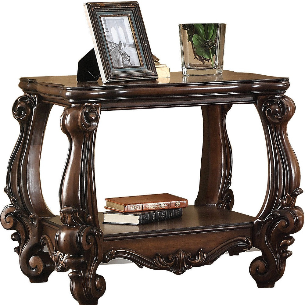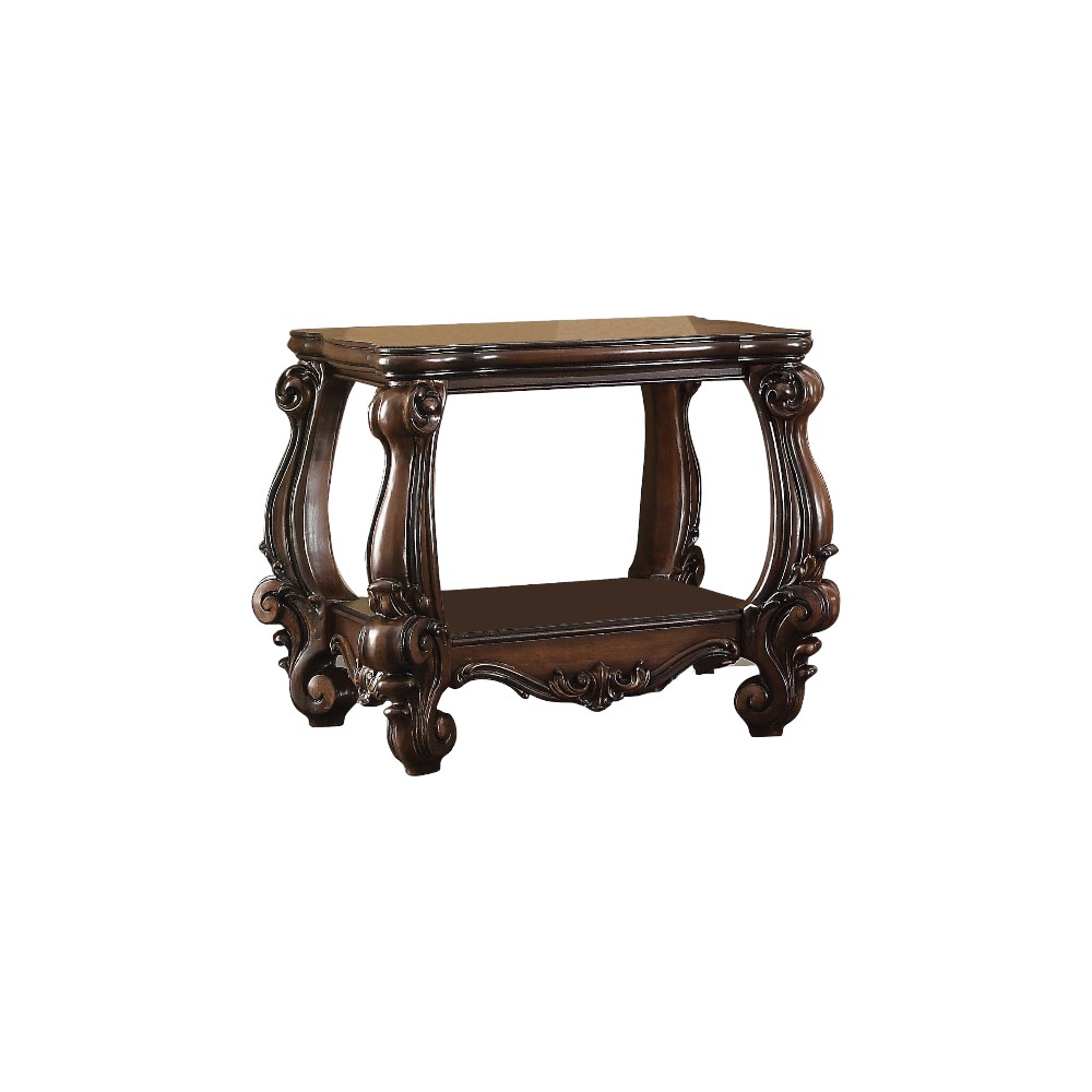 Distinctive in style, the 26" cherry oak manufactured wood square end table with shelf radiates a versatile charm. Crafted from manufactured wood, this sturdy and versatile little table has a charming style. This table is made from manufactured wood in a cherry oak color throughout the base and top. Help to keep your space organized with the included single shelf. An ideal location for placing your snacks and drinks, and a place to keep your lamp, frames, or other accessories. This versatile table is a great accent for almost any room. 26" H x 31" W x 31" D