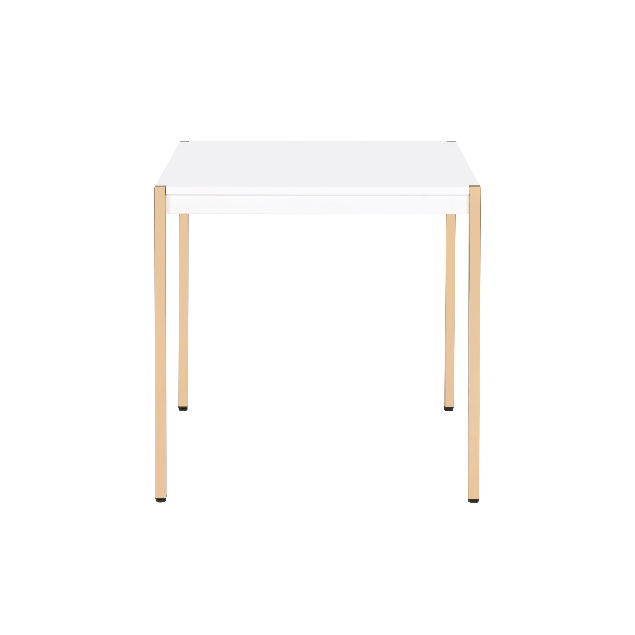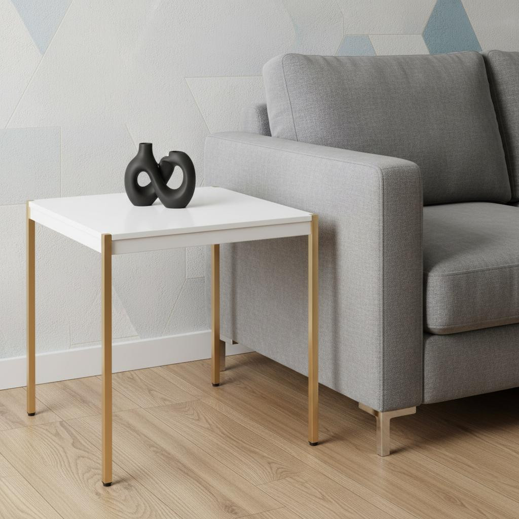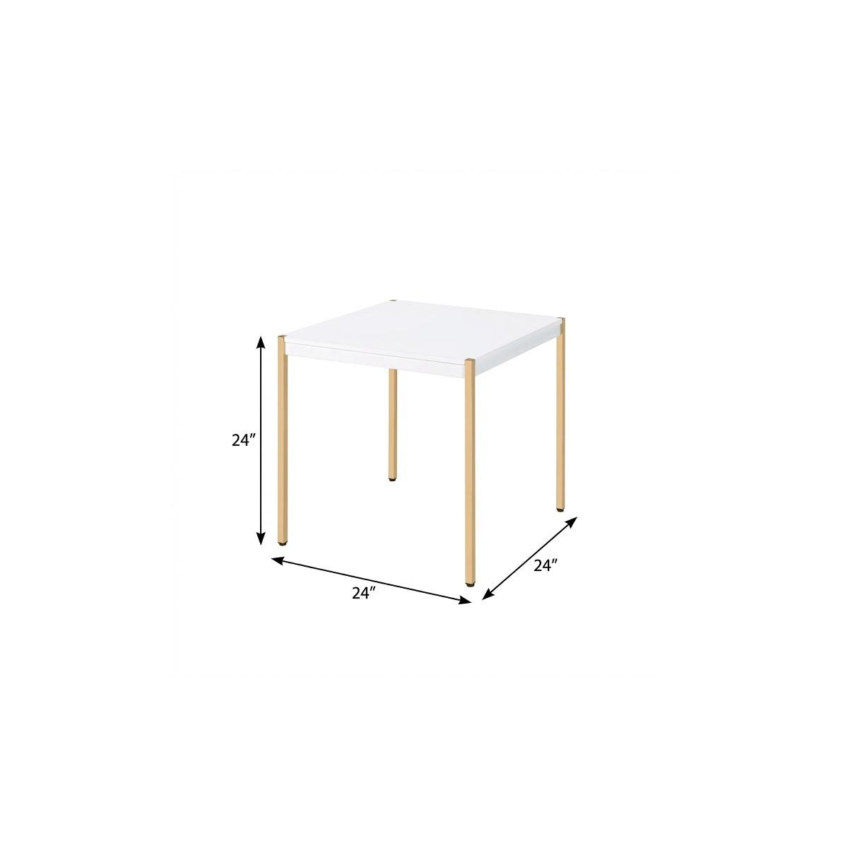 Distinctive in style the 24" gold and white manufactured wood square end table radiates a versatile charm. The white manufactured wood top of this table is a nice contrast to the high quality, gold metal of the base. Side tables are a great way to flank your sofa, use as an accent next to your favorite chair, or can even be used bedside. You can also use it as an entryway table to hold your keys. 24" H x 24" W x 24" D