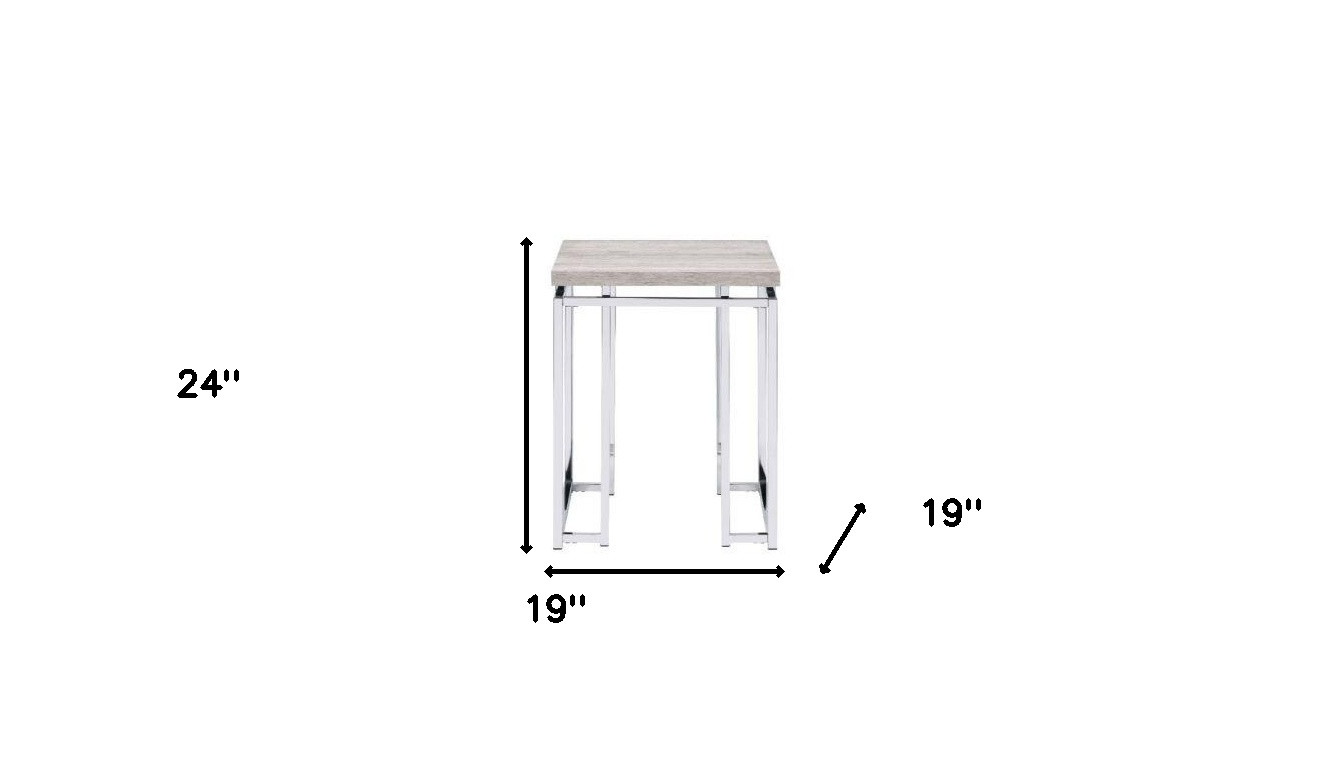Show off your exquisite taste with this 24" chrome and natural oak manufactured wood and metal square end table. The natural oak manufactured wood top of this table is a nice contrast to the high quality, chrome metal of the base. Side tables are a great way to flank your sofa, use as an accent next to your favorite chair, or can even be used bedside. You can match it with other pieces to get the ideal look for your place. 24" H x 19" W x 19" D