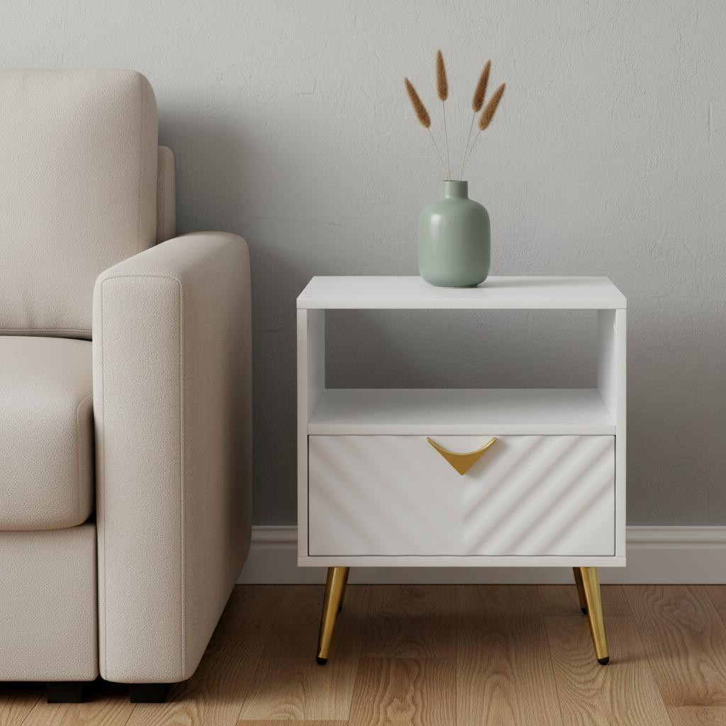 metal rectangular end table drawer, white high gloss manufactured wood, wood metal rectangular end table, rectangular end table drawer shelf, table drawer shelf |