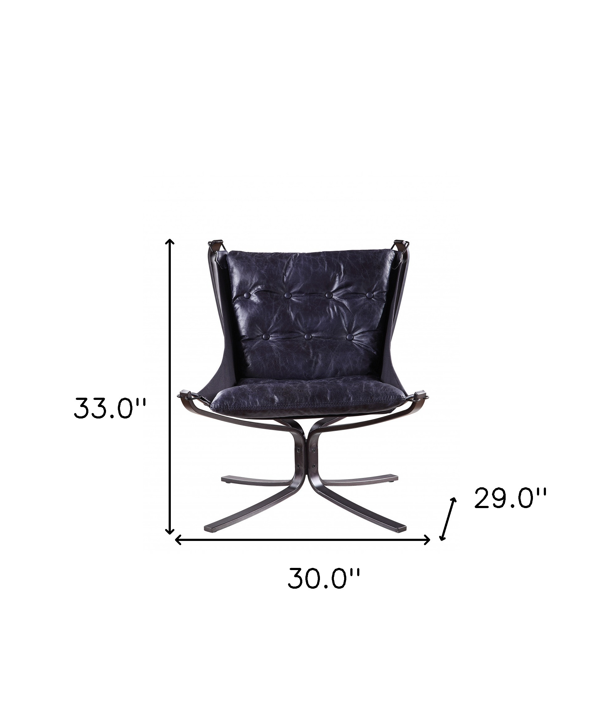 Fill your living room, bedroom, or office with fashionable seating options with this 30-inch blue and steel blue top grain leather tufted lounge chair. This gorgeous solid color blue lounge chair is masterfully upholstered in durable top grain leather. The high quality manufactured wood inner frame flaunts a tufted back that is complimented by soft and comfortable cushioning. The tufted cushions add fine designer detailing. 33-inch h x 30-inch w x 29-inch d.