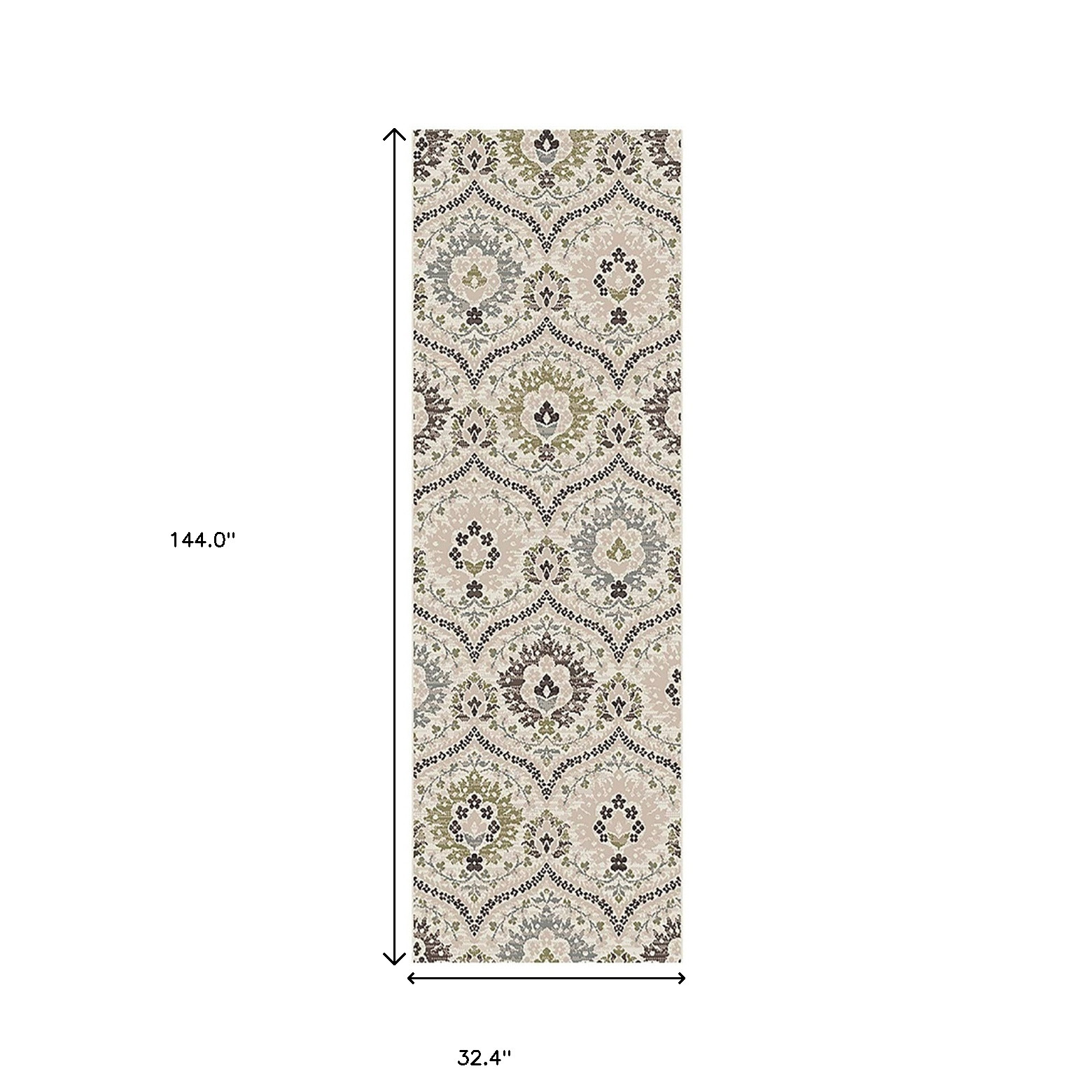 This 12-foot black ivory and gray floral runner rug, is a great way to add warmth to a room. Ideal for spaces with kids and pets, this rug is stain resistant to help repel dirt and spilled liquids. Built to last, this rug crafted from polypropylene fibers is known for its durability and long lasting appeal. Rugs are a great way to showcase your style, hide imperfections, warm your home and reduce noise. This transitional style runner makes a great accent for the hallway, in front of cabinets, in the laundry room, or any other space you need a narrow and long rug. 32.40-inch h x 144.00-inch w x 0.31-inch d.