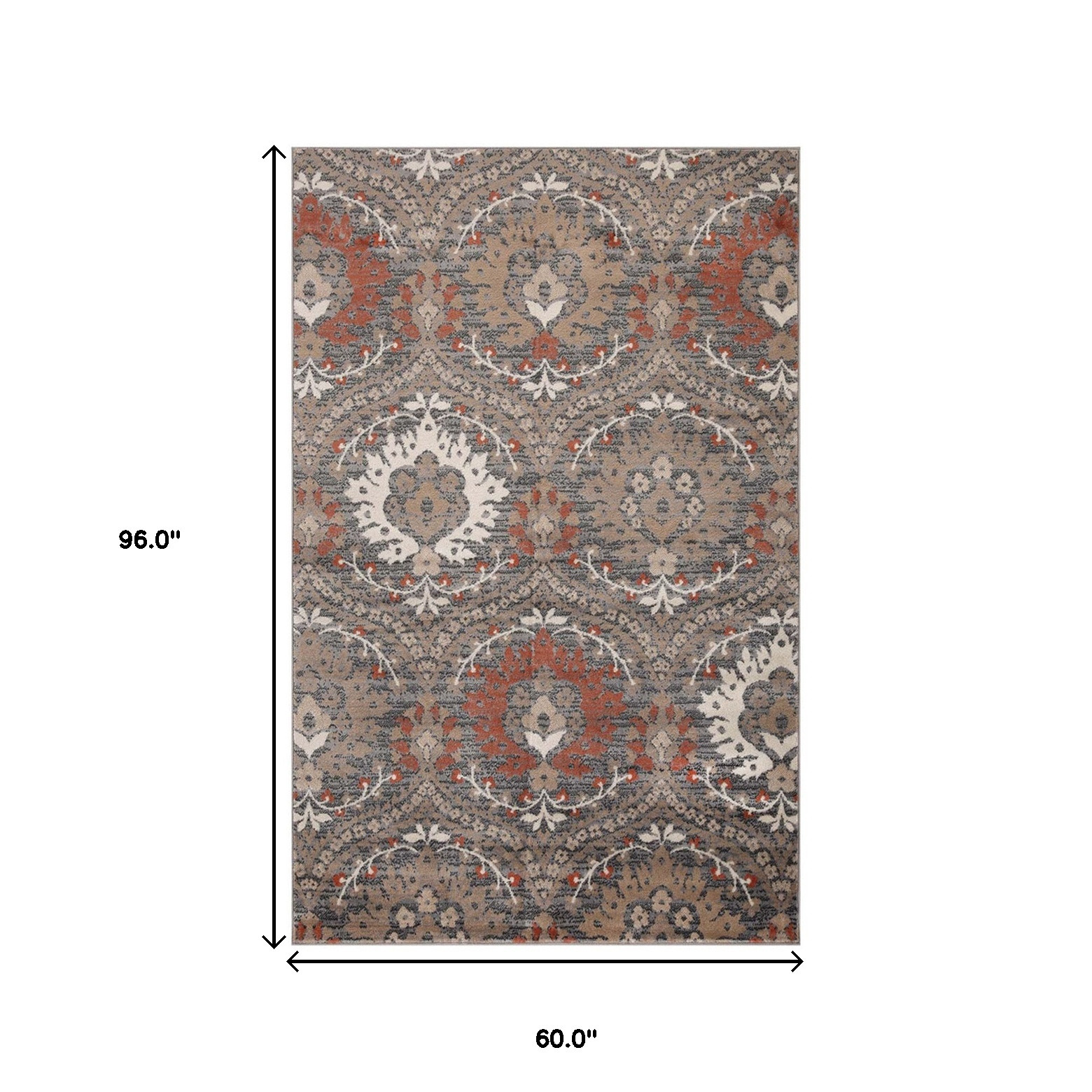 Add some artistry to your room with this 5-foot x 8-foot rust brown and gray floral area rug. Ideal for spaces with kids and pets, this rug is stain resistant to help repel dirt and spilled liquids. Built to last, this rug crafted from polypropylene fibers is known for its durability and long lasting appeal. Rugs are a great way to showcase your style, hide imperfections, warm your home and reduce noise. This larger sized, transitional styled rug is ready to create a focal point or statement piece in your room. 60.00-inch h x 96.00-inch w x 0.31-inch d.
