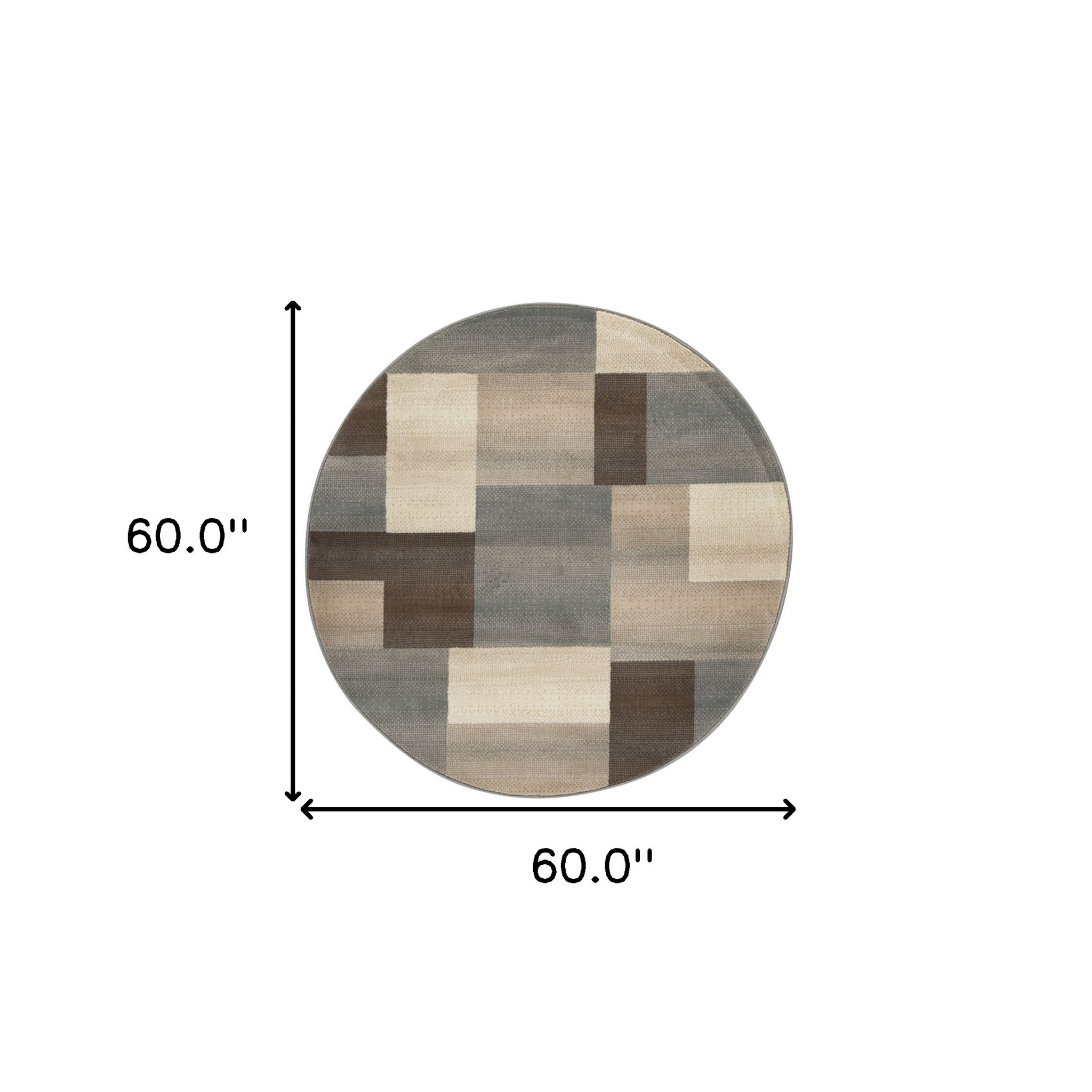 Add some artistry to your room with this 5-foot gray tan and brown patchwork round rug. Ideal for spaces with kids and pets, this rug is stain resistant to help repel dirt and spilled liquids. Built to last, this rug crafted from polypropylene fibers is known for its durability and long lasting appeal. Rugs are a great way to showcase your style, hide imperfections, warm your home and reduce noise. This larger sized, transitional styled rug is ready to create a focal point or statement piece in your room. 60.00-inch h x 60.00-inch w x 0.31-inch d.