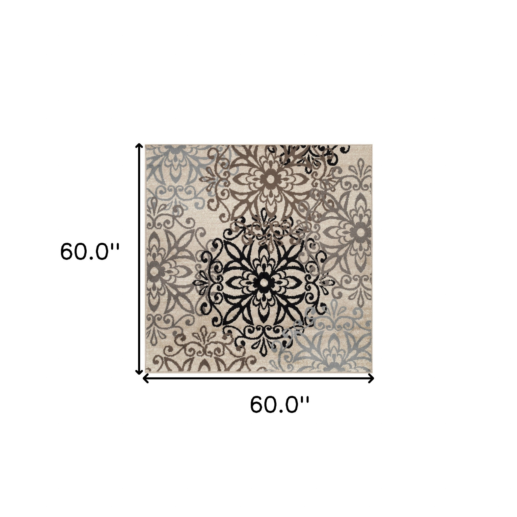 This 5-foot brown black and gray medallion square rug, is a great way to add warmth to a room. Ideal for spaces with kids and pets, this rug is stain resistant to help repel dirt and spilled liquids. Built to last, this rug crafted from polypropylene fibers is known for its durability and long lasting appeal. Rugs are a great way to showcase your style, hide imperfections, warm your home and reduce noise. This larger sized, transitional styled rug is ready to create a focal point or statement piece in your room. 60.00-inch h x 60.00-inch w x 0.31-inch d.