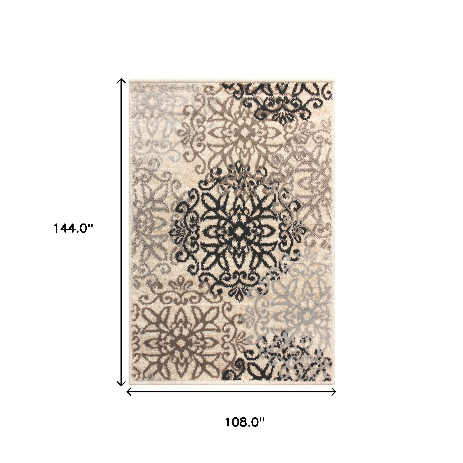 Set an inviting tone in your space with this 9-foot x 12-foot beige black and brown floral medallion area rug. Ideal for spaces with kids and pets, this rug is stain resistant to help repel dirt and spilled liquids. Built to last, this rug crafted from polypropylene fibers is known for its durability and long lasting appeal. Rugs are a great way to showcase your style, hide imperfections, warm your home and reduce noise. This larger sized, transitional styled rug is ready to create a focal point or statement piece in your room. 108.00-inch h x 144.00-inch w x 1.00-inch d.