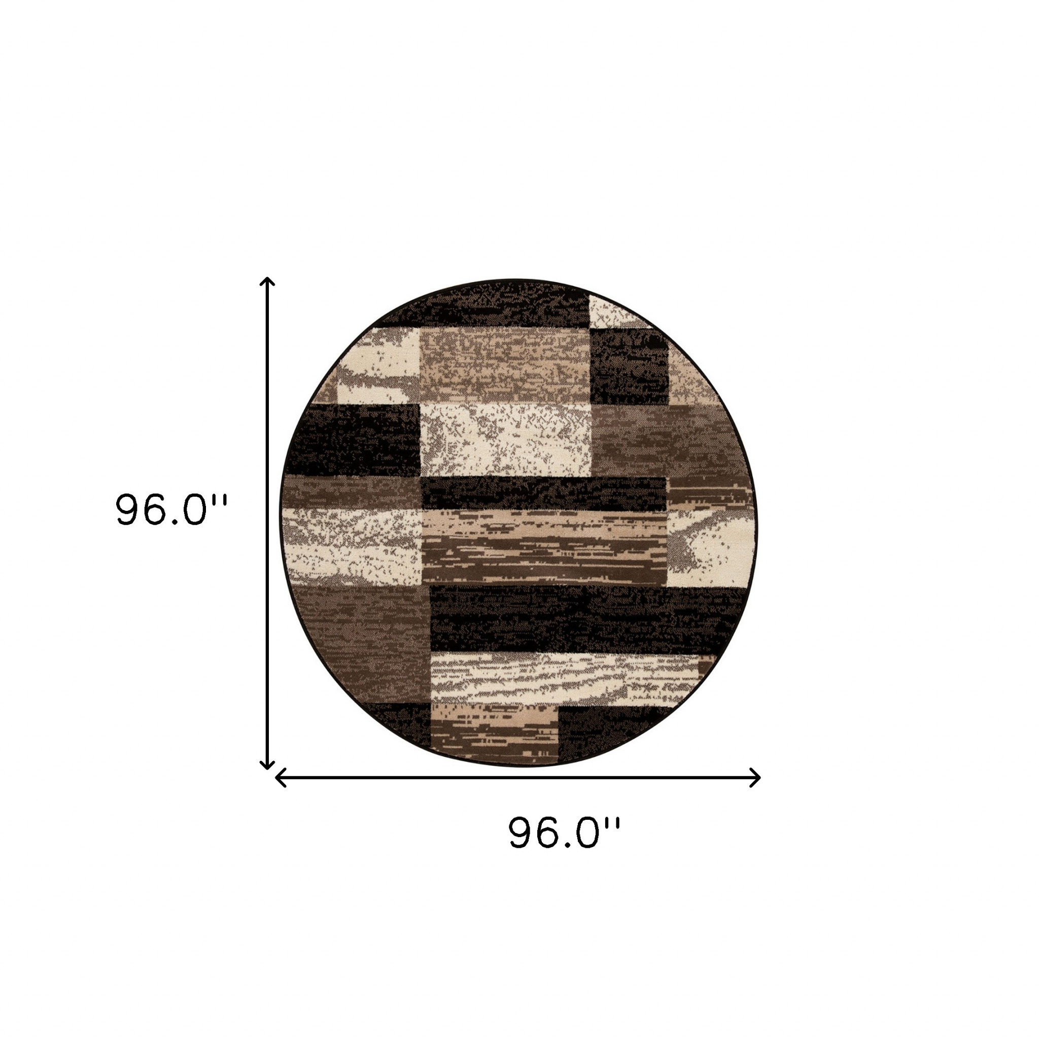 Set an inviting tone in your space with this 8-foot black brown and beige patchwork round rug. Ideal for spaces with kids and pets, this rug is stain resistant to help repel dirt and spilled liquids. Built to last, this rug crafted from polypropylene fibers is known for its durability and long lasting appeal. Rugs are a great way to showcase your style, hide imperfections, warm your home and reduce noise. This larger sized, transitional styled rug is ready to create a focal point or statement piece in your room. 96.00-inch h x 96.00-inch w x 0.31-inch d.