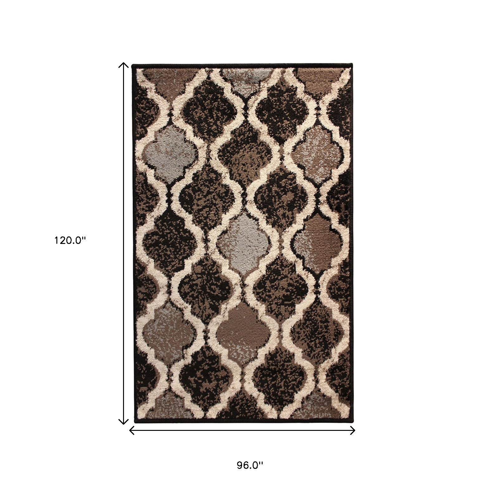 This 8-foot x 10-foot brown black and ivory quatrefoil distressed area rug, is a great way to add warmth to a room. Ideal for spaces with kids and pets, this rug is stain resistant to help repel dirt and spilled liquids. Built to last, this rug crafted from polypropylene fibers is known for its durability and long lasting appeal. Rugs are a great way to showcase your style, hide imperfections, warm your home and reduce noise. This larger sized, transitional styled rug is ready to create a focal point or statement piece in your room. 96.00-inch h x 120.00-inch w x 0.31-inch d.