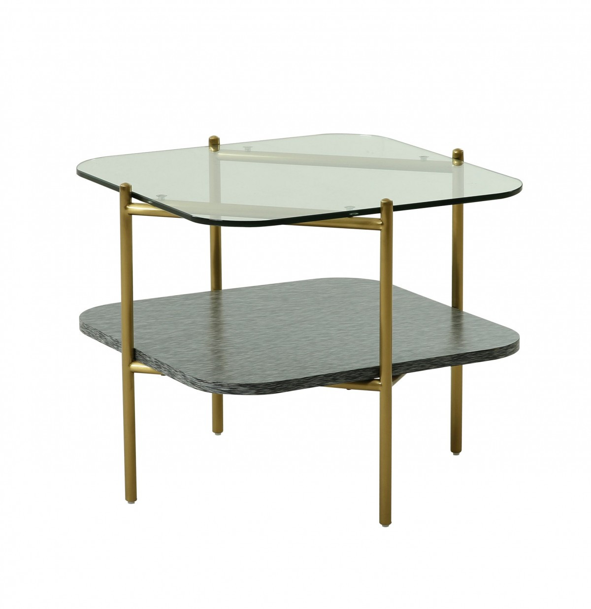 metal square end table shelf, 20" gold clear glass, glass metal square end table, gold clear glass metal square, square end table shelf |