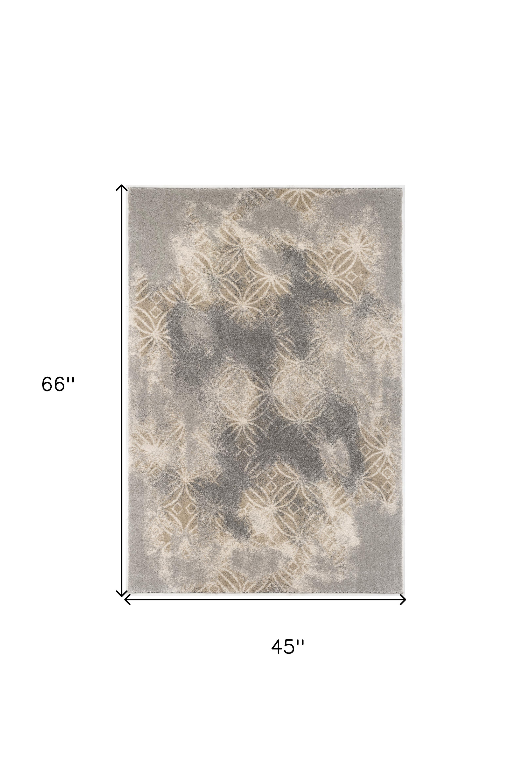 This 4-foot x 6-foot gray and ivory abstract area rug, is a great way to add warmth to a room. Ideal for spaces with kids and pets, this rug is stain resistant to help repel dirt and spilled liquids. Built to last, this rug crafted from polyester fibers is known for its durability and long lasting appeal. This smaller sized, modern styled rug is just what you need for your walkway, bedside, in front of door, cabinet, refrigerator, or chair. 45.00-inch h x 66.00-inch w x 0.75-inch d.