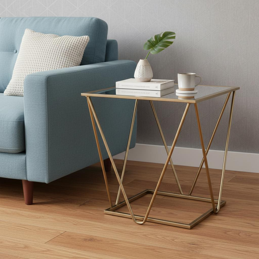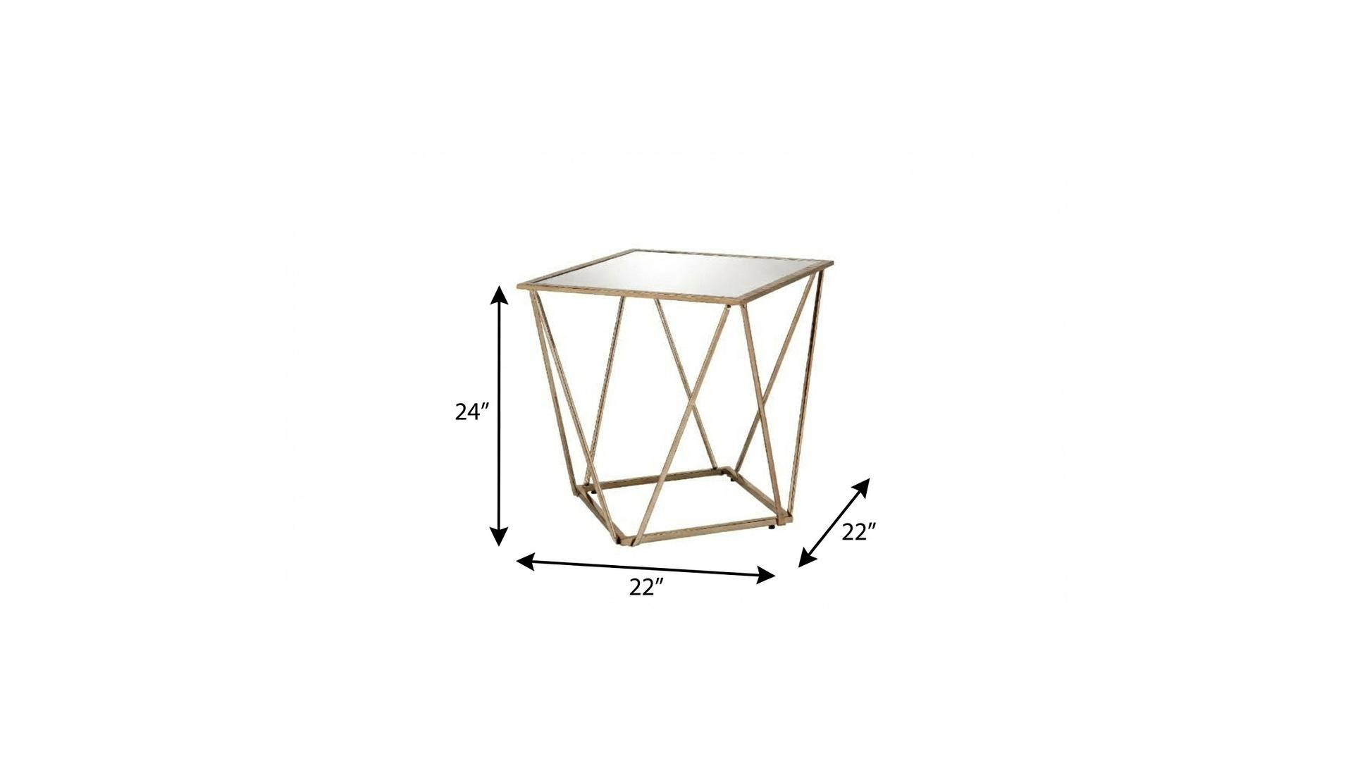 Show off your exquisite taste with this 24" champagne and silver glass and metal square mirrored end table. The base of this table is made from metal in a champagne color that is a nice contrast to the silver glass tabletop. Reflective pieces of mirrored glass give this table a glamorous and unique look. A great accent on either side of the sofa or bed, this adorable end or side table is just what you need. This versatile table is a great accent for most any room. 24" H x 22" W x 22" D