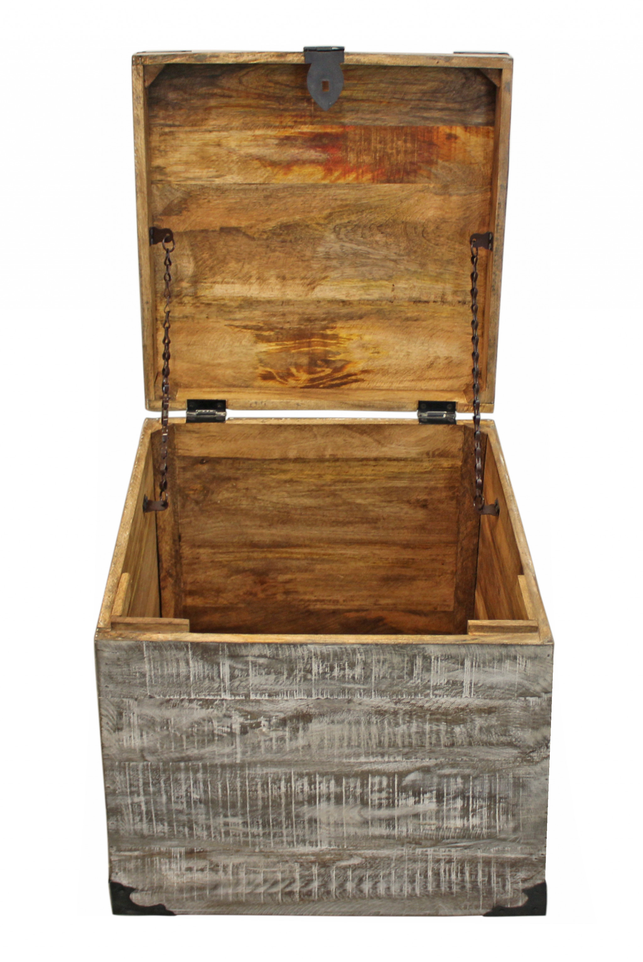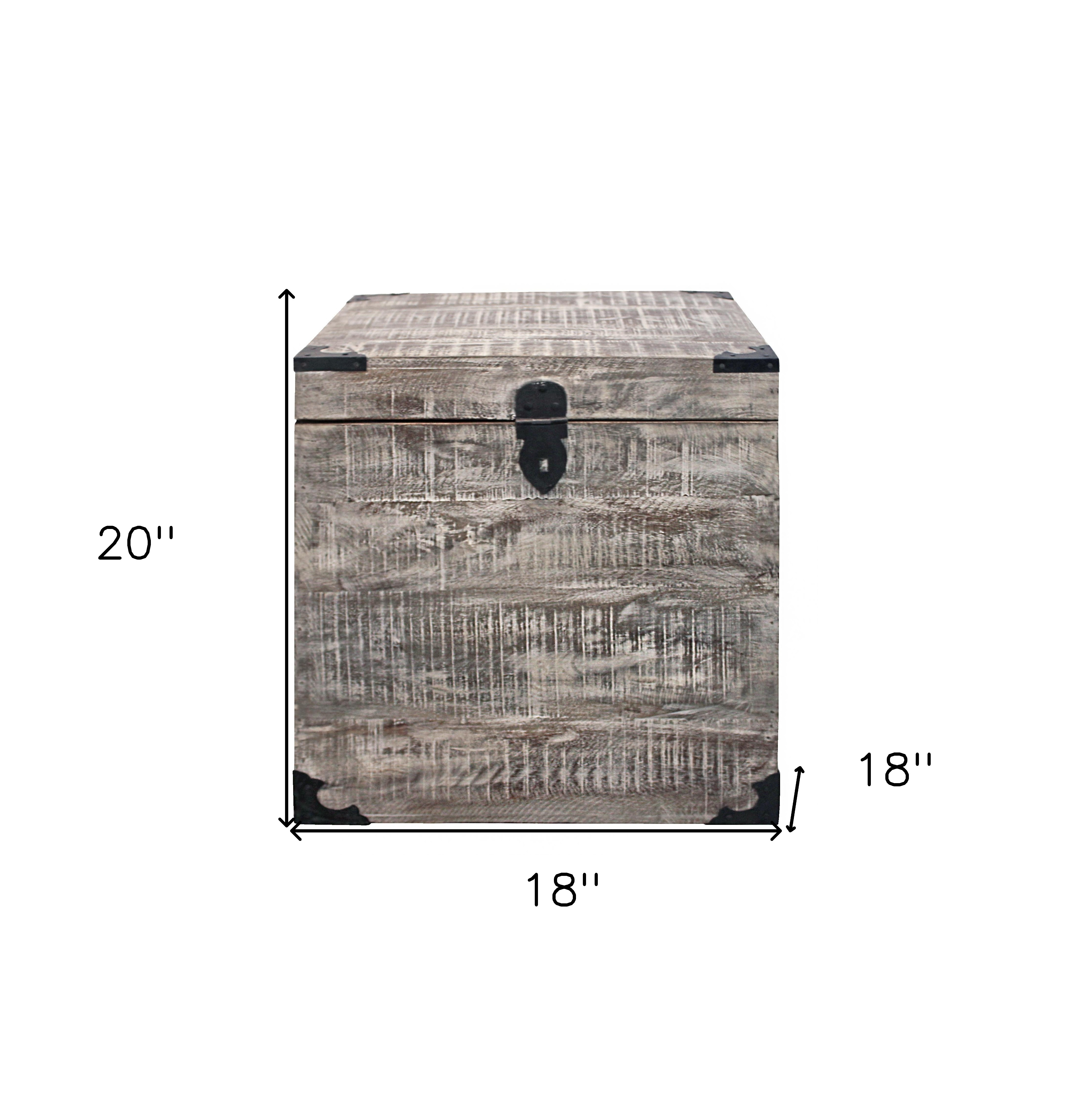 Show off your exquisite taste with this 20" gray solid wood square end table. This table is made from solid wood in a gray color throughout the base and top. The purposefully distressed finish gives this table an authentically rustic feel. An ideal location for placing your snacks and drinks, and a place to keep your lamp, frames, or other accessories. You can match it with other pieces to get the ideal look for your place. 20" H x 18" W x 18" D