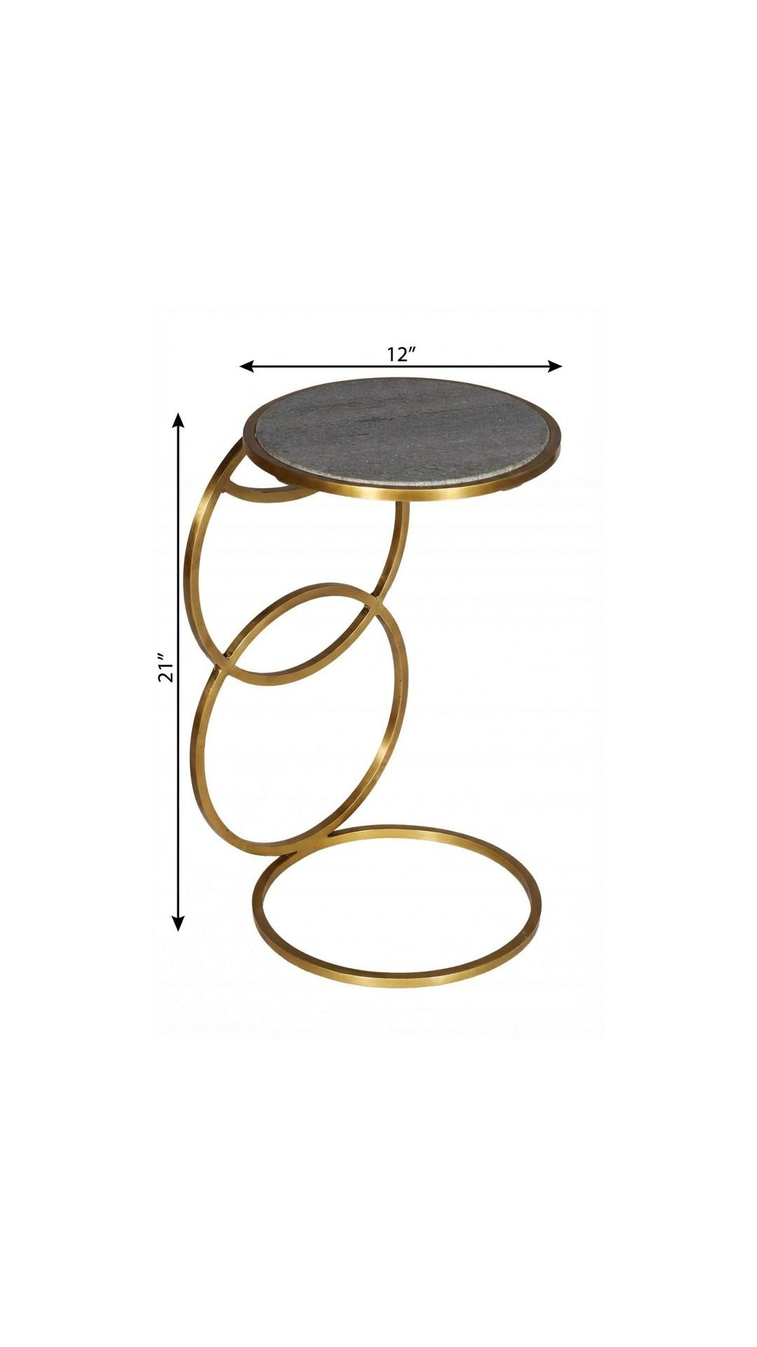Optimize your space and add some charm to your room with the 21" gold and gray marble and iron round end table. The gray marble top of this table is a nice contrast to the high quality, gold iron of the base. Side tables are a great way to flank your sofa, use as an accent next to your favorite chair, or can even be used bedside. This versatile table is a great accent for most any room. 21" H x 12" W x 12" D
