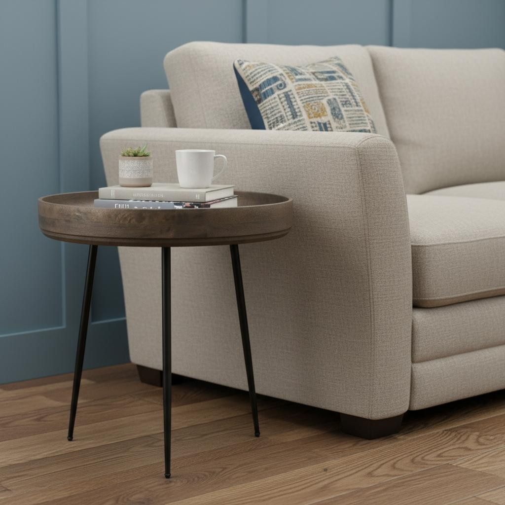 wood iron round end table, iron round end table, 18" black gray solid wood, gray solid wood iron round, solid wood iron round end |