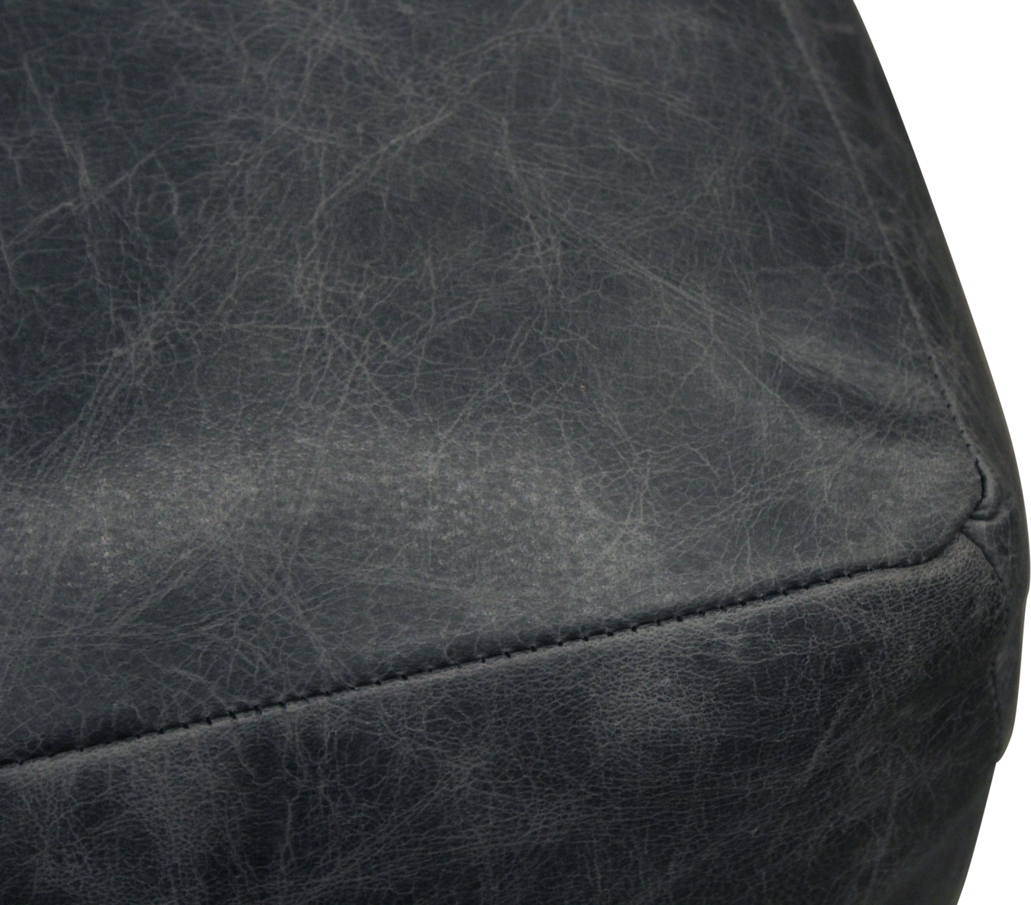 Practicality and fashion mix together with this handy 22-inch black leather pouf ottoman. Add chic style to your space with this fun pouf that not only looks cool but can be a great foot rest or extra seat when needed. Expertly upholstered with padding in a soft vintage style distressed leather, this ottoman is as comfortable as it is good looking. Ottomans are multi-functional additions to your space that add fashion and practical value. 13-inch H x 22-inch W x 22-inch D