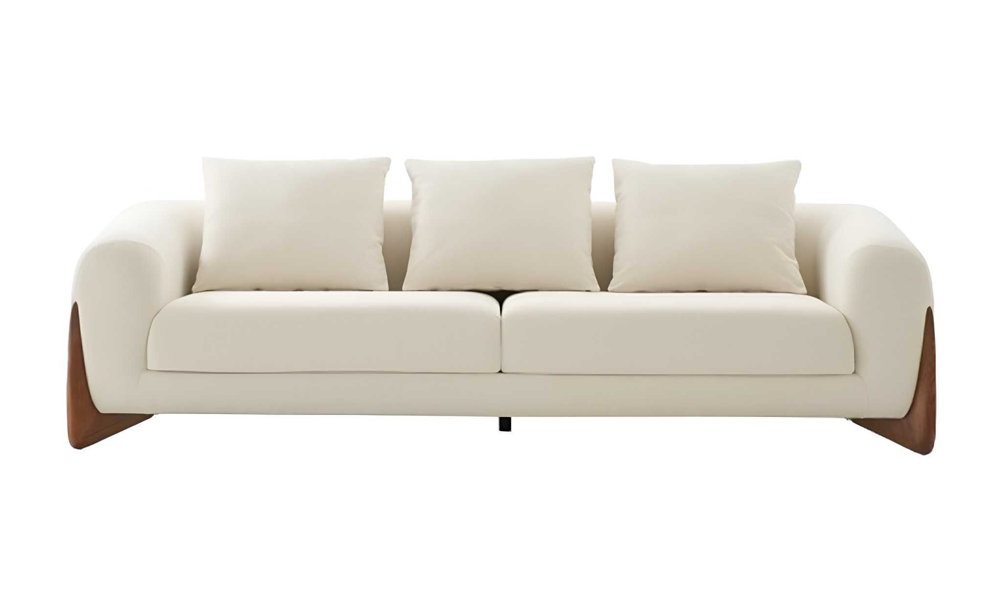 Designed for comfort and good looks, this 100-inch cream fabric sofa with wood brown legs is a great option to anchor your space. Solid colors give you lots of decorative options and are easy to work into your decor scheme. Round arms offer a comfy place to rest. Wood brown solid wood legs effortlessly elevate the room and add a touch of contemporary design. A great showpiece for your room, this sofa is a must have. 30.5-inch H x 100-inch W x 38.6-inch D