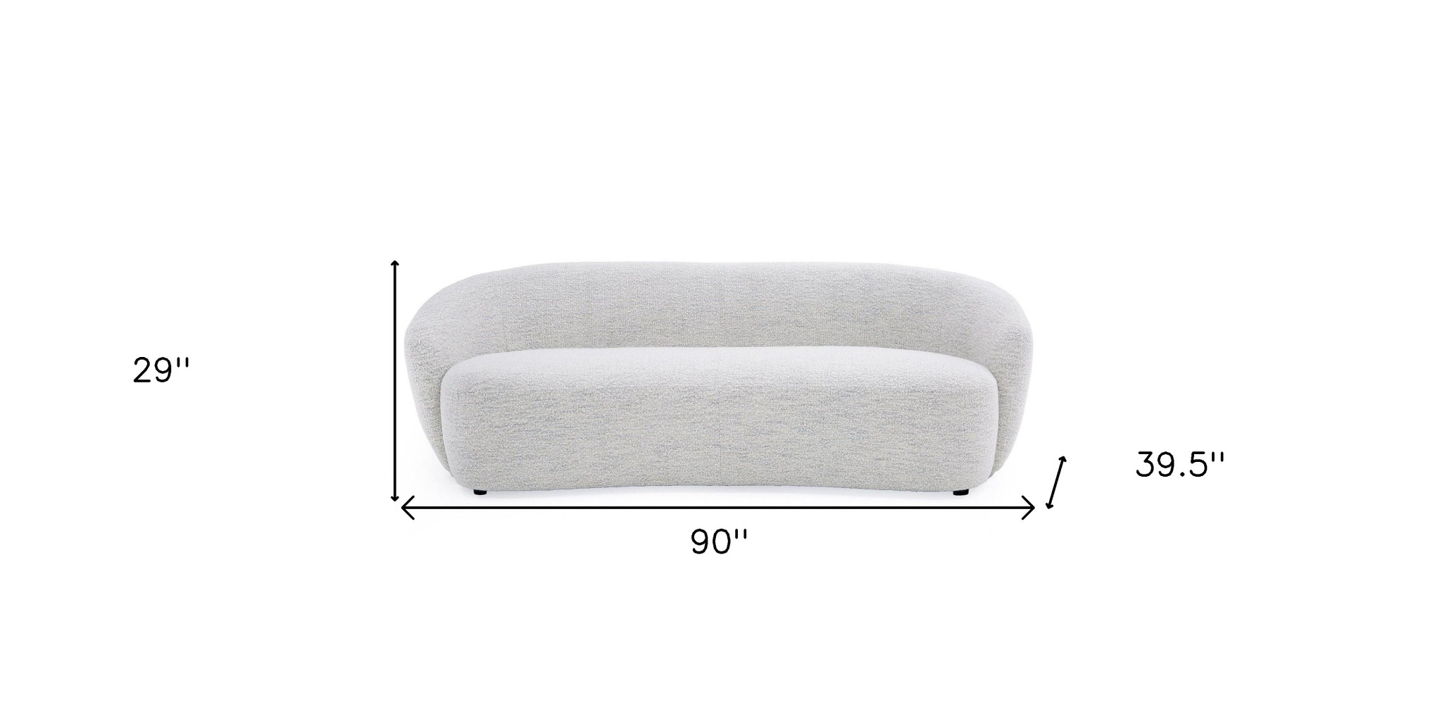 Designed for comfort and good looks, this 90-inch off white fabric sofa with black legs is a great option to anchor your space. Solid colors give you lots of decorative options and are easy to work into your decor scheme. Round arms offer a comfy place to rest. Black metal legs effortlessly elevate the room and add a touch of contemporary design. A great showpiece for your room, this sofa is a must have. 29-inch H x 90-inch W x 39.5-inch D