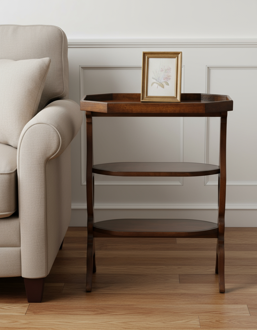 wood octagon end table shelves, octagon end table shelves, manufactured wood octagon end table, wood octagon end table, brown manufactured wood octagon end |