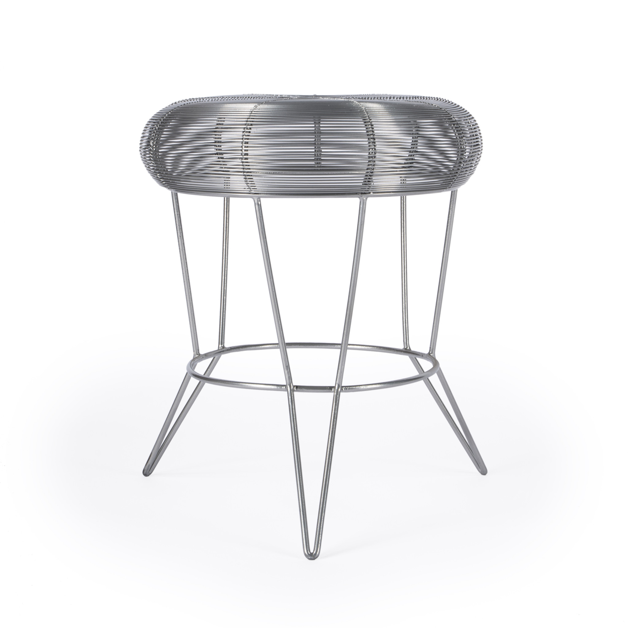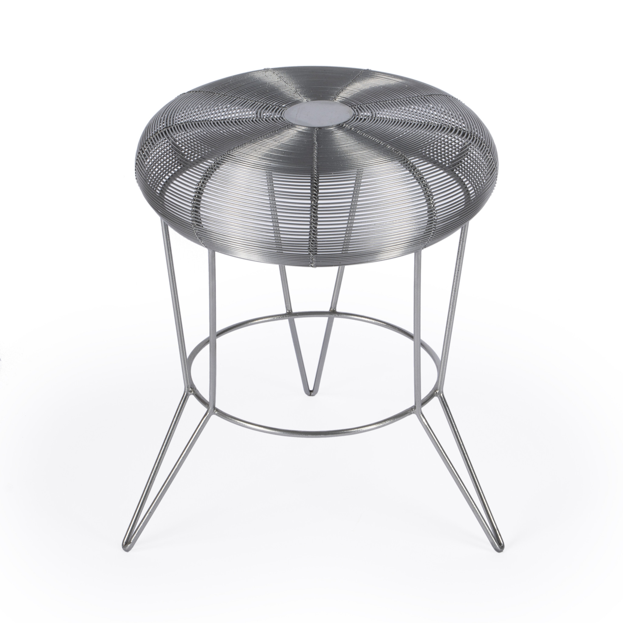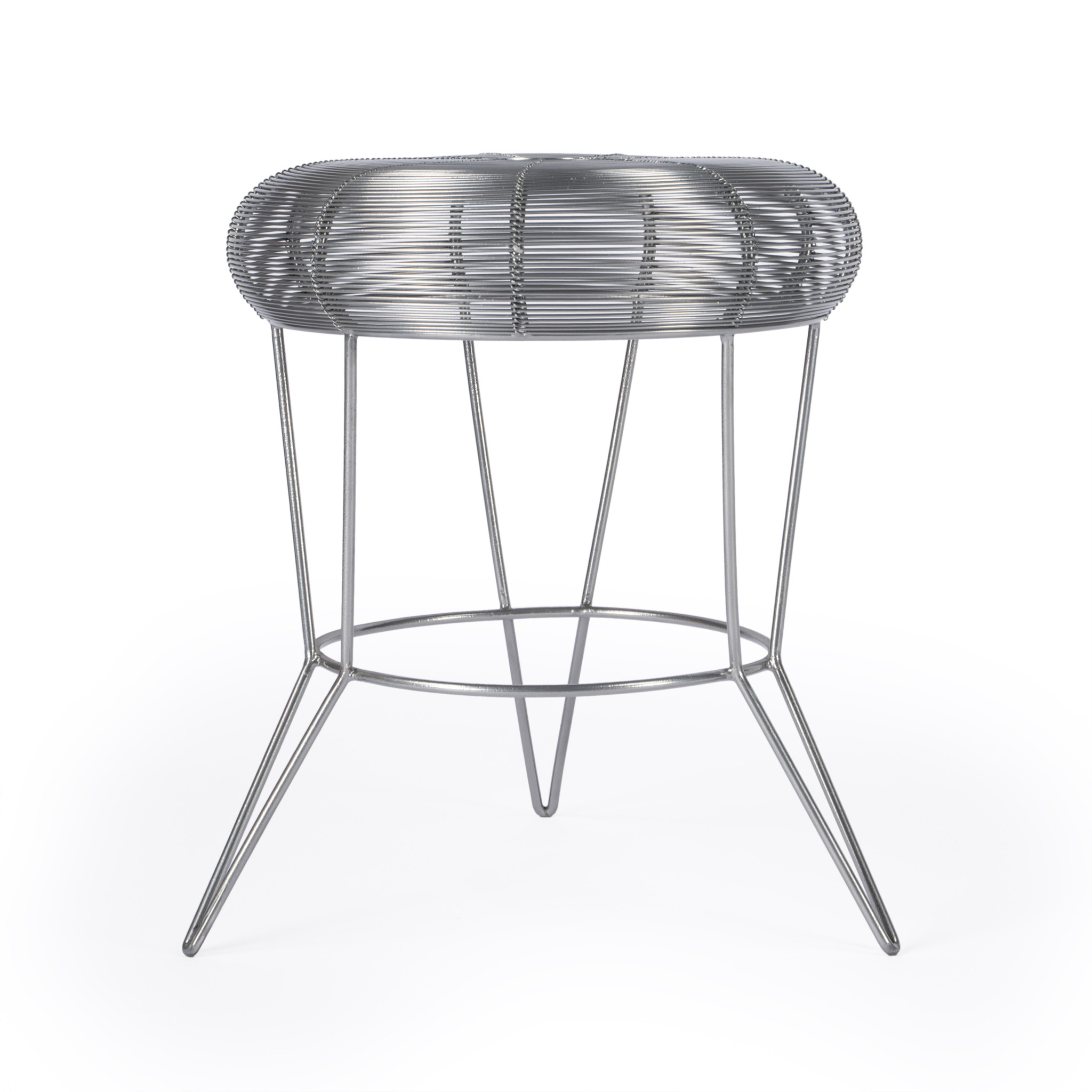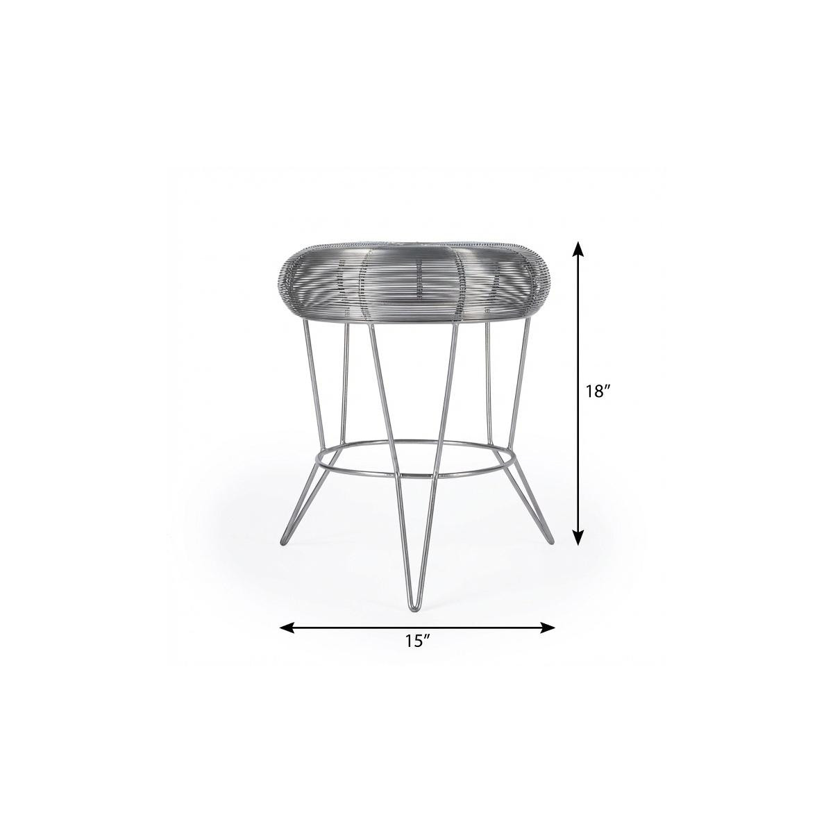 Optimize your space and add some charm to your room with the 18" silver wire round end table. This table features quality construction from iron and an updated monotone color scheme with silver as the main color on both the top and the base. The purposefully distressed finish gives this table an authentically rustic feel. Side tables are a great way to flank your sofa, use as an accent next to your favorite chair, or can even be used bedside. You can also use it as an entryway table to hold your keys. 18" H x 15" W x 15" D