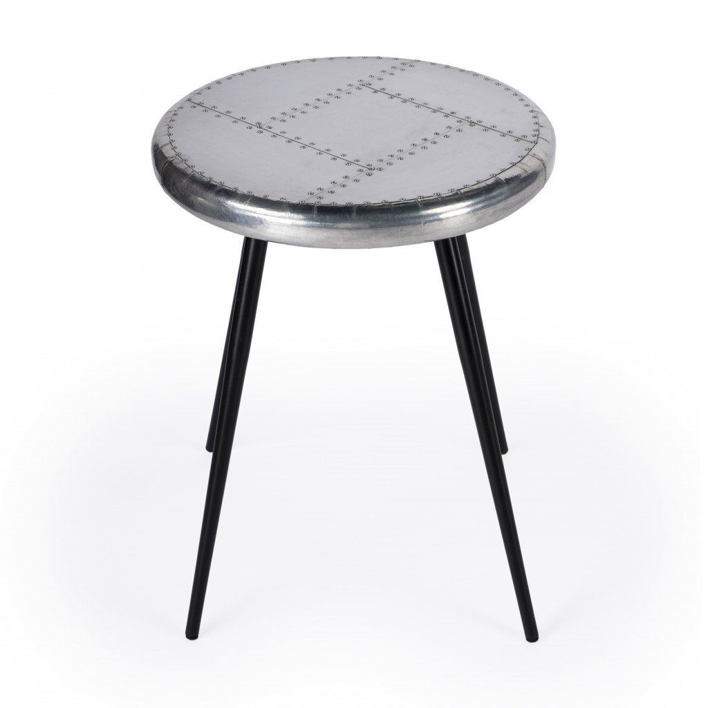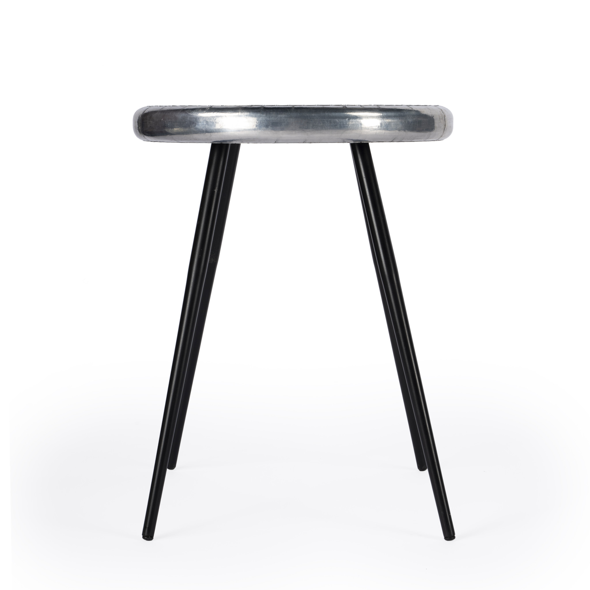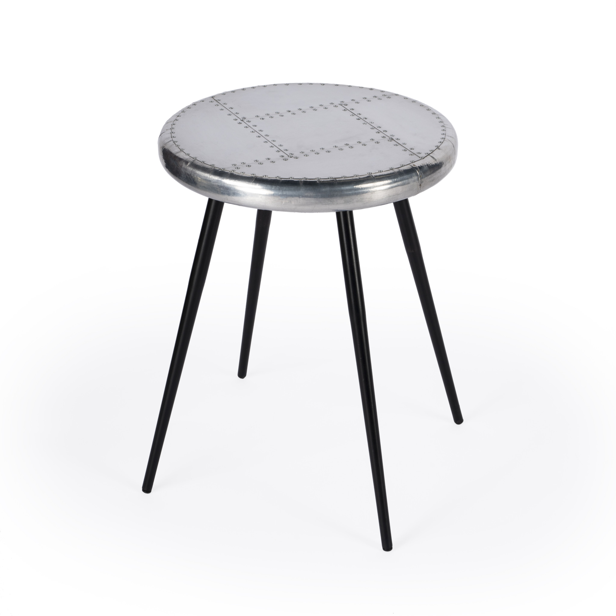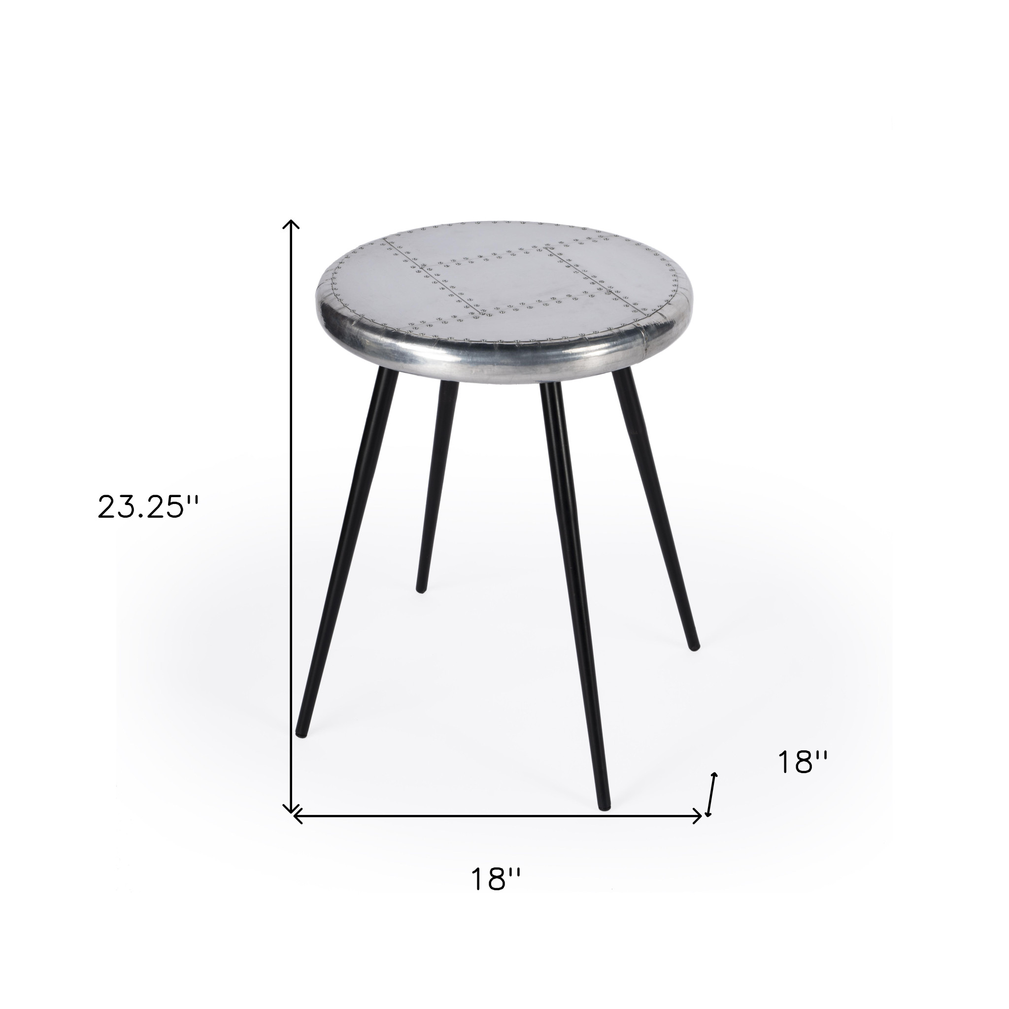 Distinctive in style the 23" silver manufactured wood round end table radiates a versatile charm. A solid silver iron frame is finished off with a matching aluminum sheeting over manufactured wood seat, giving this table a chic monotone look with a unique patchwork design. The purposefully distressed finish gives this table an authentically rustic feel. An ideal location for placing your snacks and drinks, and a place to keep your lamp, frames, or other accessories. You can match it with other pieces to get the ideal look for your place. 23.25" H x 18" W x 18" D