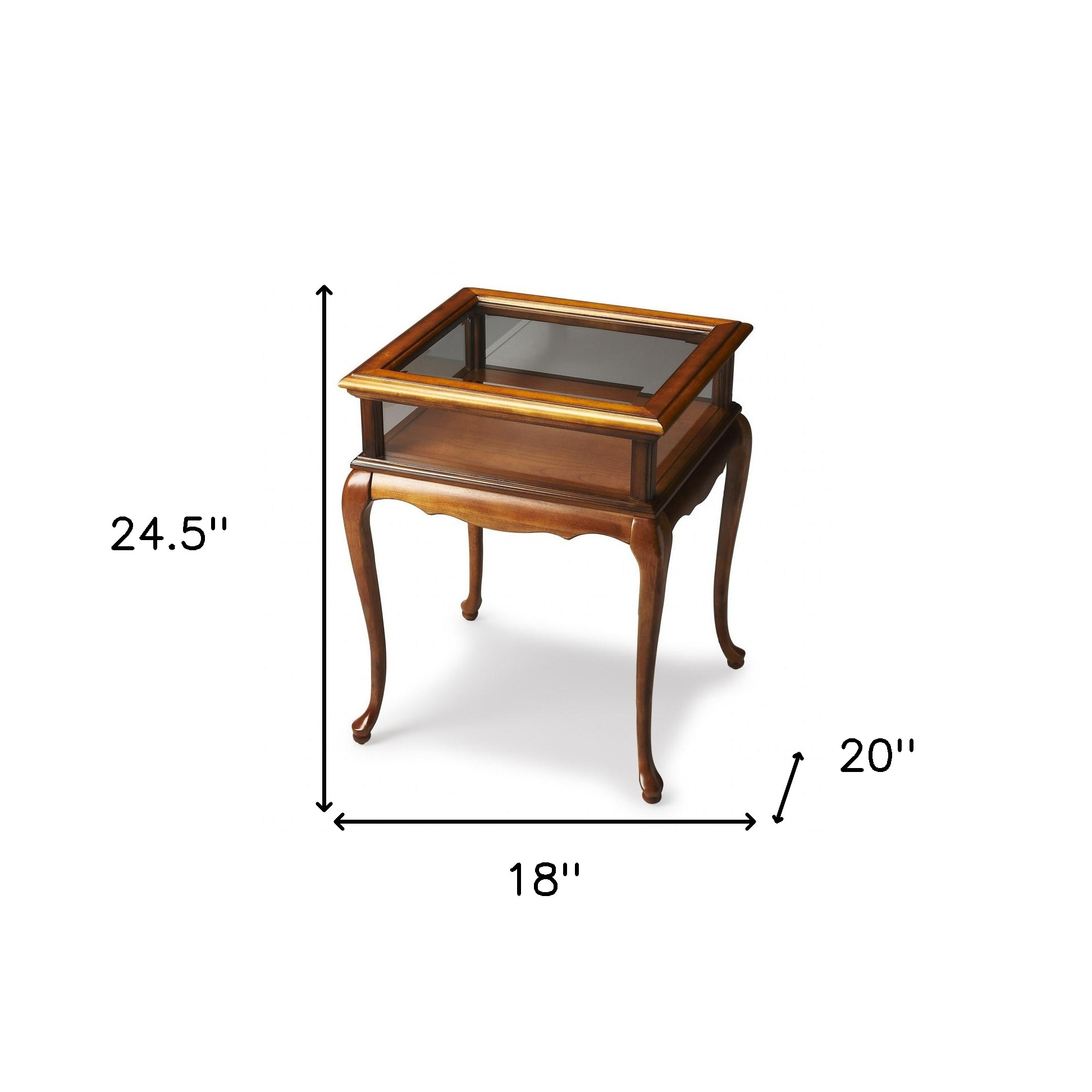 Optimize your space and add some charm to your room with the 25" medium brown glass rectangular end table. A sleek medium brown monotone color gives this solid wood and glass table a fresh and updated look. Complete with a purposefully distressed finish, this table has an aged, vintage, and rustic feel. An ideal location for placing your snacks and drinks, and a place to keep your lamp, frames, or other accessories. You can match it with other pieces to get the ideal look for your place. 24.5" H x 18" W x 20" D