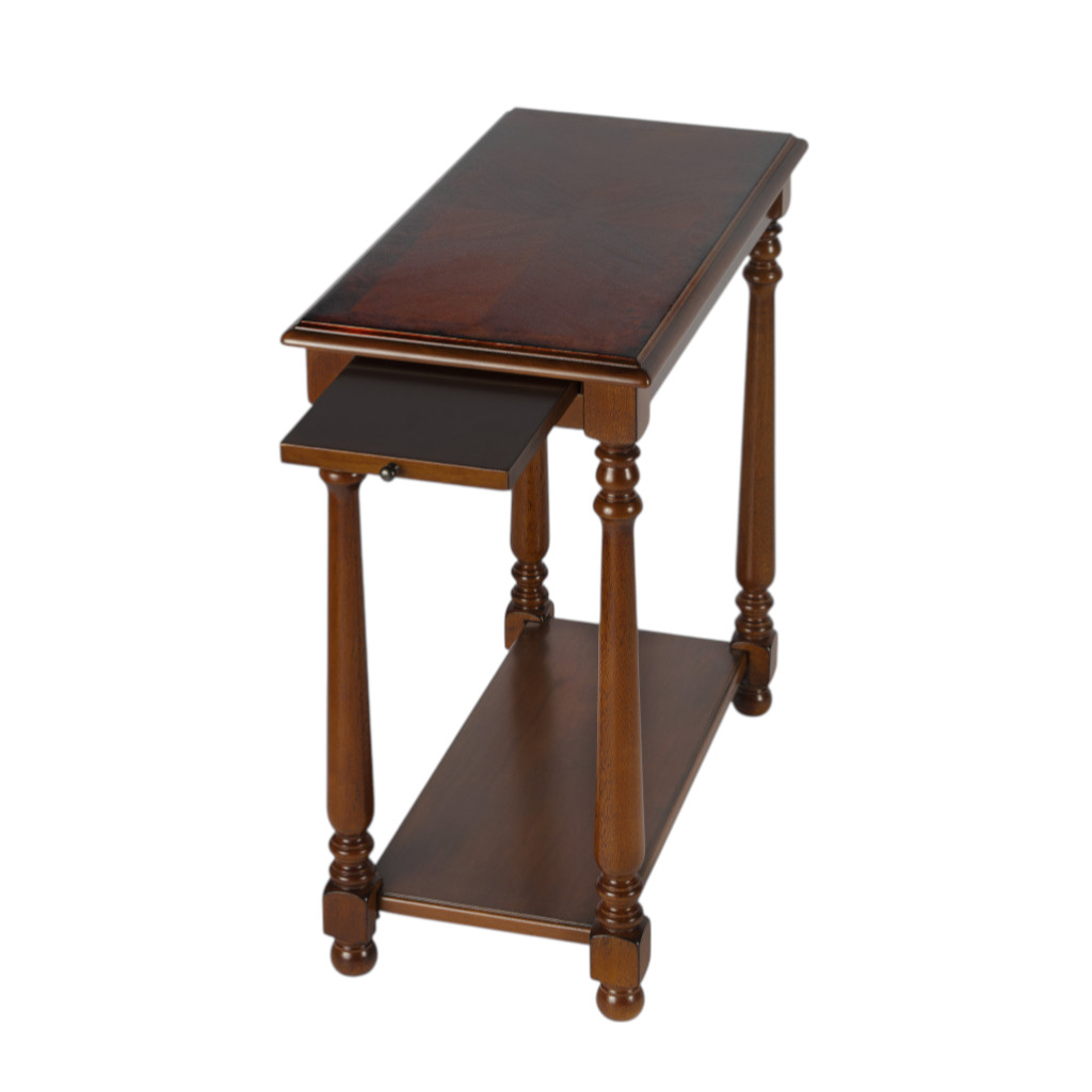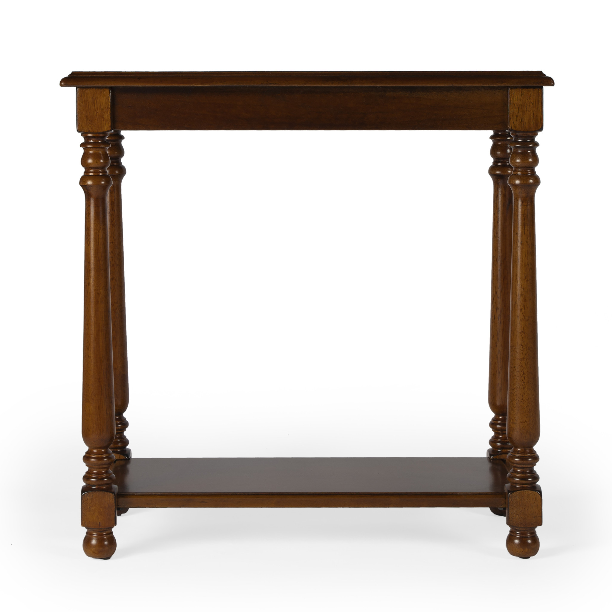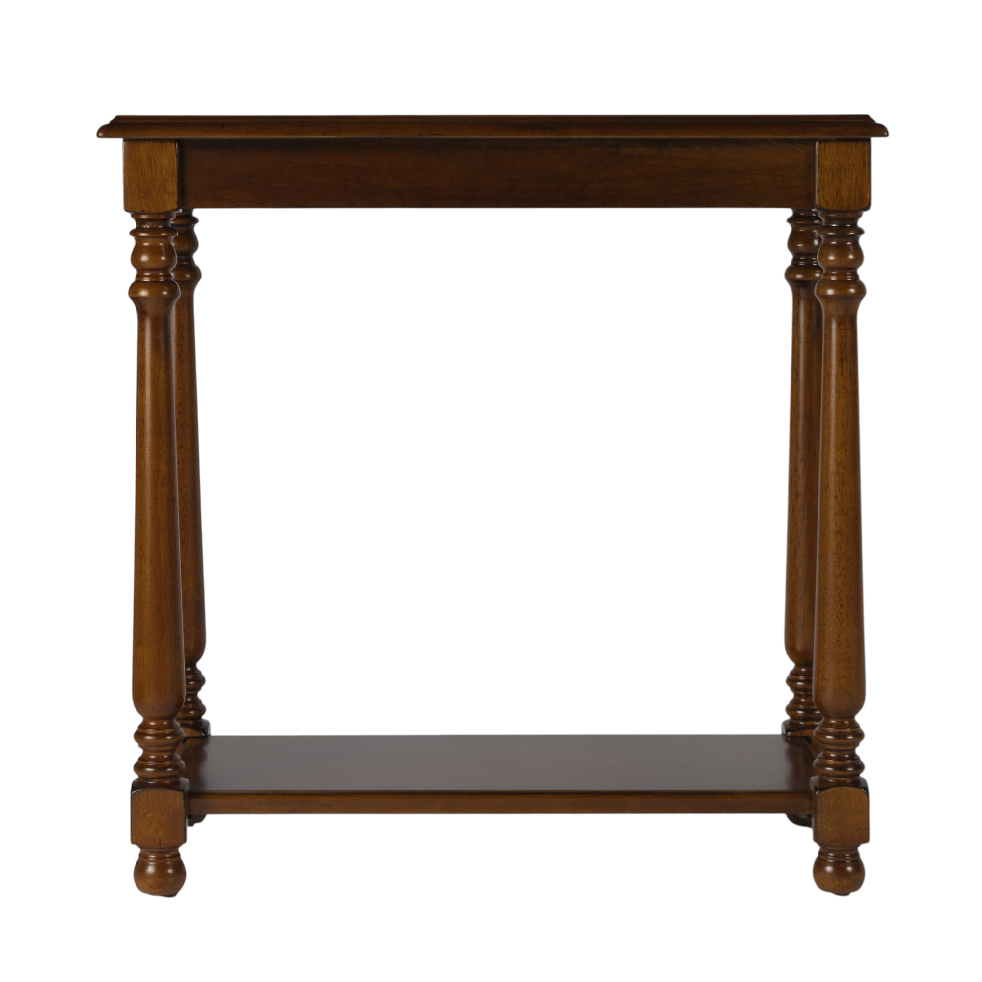 Optimize your space and add some charm to your room with the 24" brown manufactured wood rectangular end table with shelf. A solid brown solid and manufactured wood frame is finished off with a matching brown manufactured wood seat, giving this table a chic monotone look. Complete with a purposefully distressed finish, this table has an aged, vintage, and rustic feel. Help to keep your space organized with the included single shelf. A great accent on either side of the sofa or bed, this adorable end or side table is just what you need. This versatile table is a great accent for most any room. 24.25" H x 12" W x 24" D