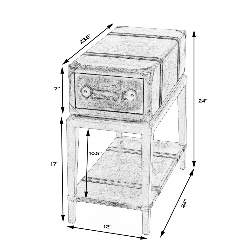 Show off your exquisite taste with this 24" brown old world map end table with drawer and shelf. Unique styling and a warm brown map design in a lacquer finish gives this mix of solid and manufactured wood table a fresh and updated look. The purposefully distressed finish combines with faux leather accents to give this table an authentically rustic feel. Help to keep your space organized with the included single shelf. Includes a single easy pull out drawer for handy storage of life's little essentials. An ideal location for placing your snacks and drinks, and a place to keep your lamp, frames, or other accessories. This versatile table is a great accent for most any room. 24" H x 24" W x 12" D