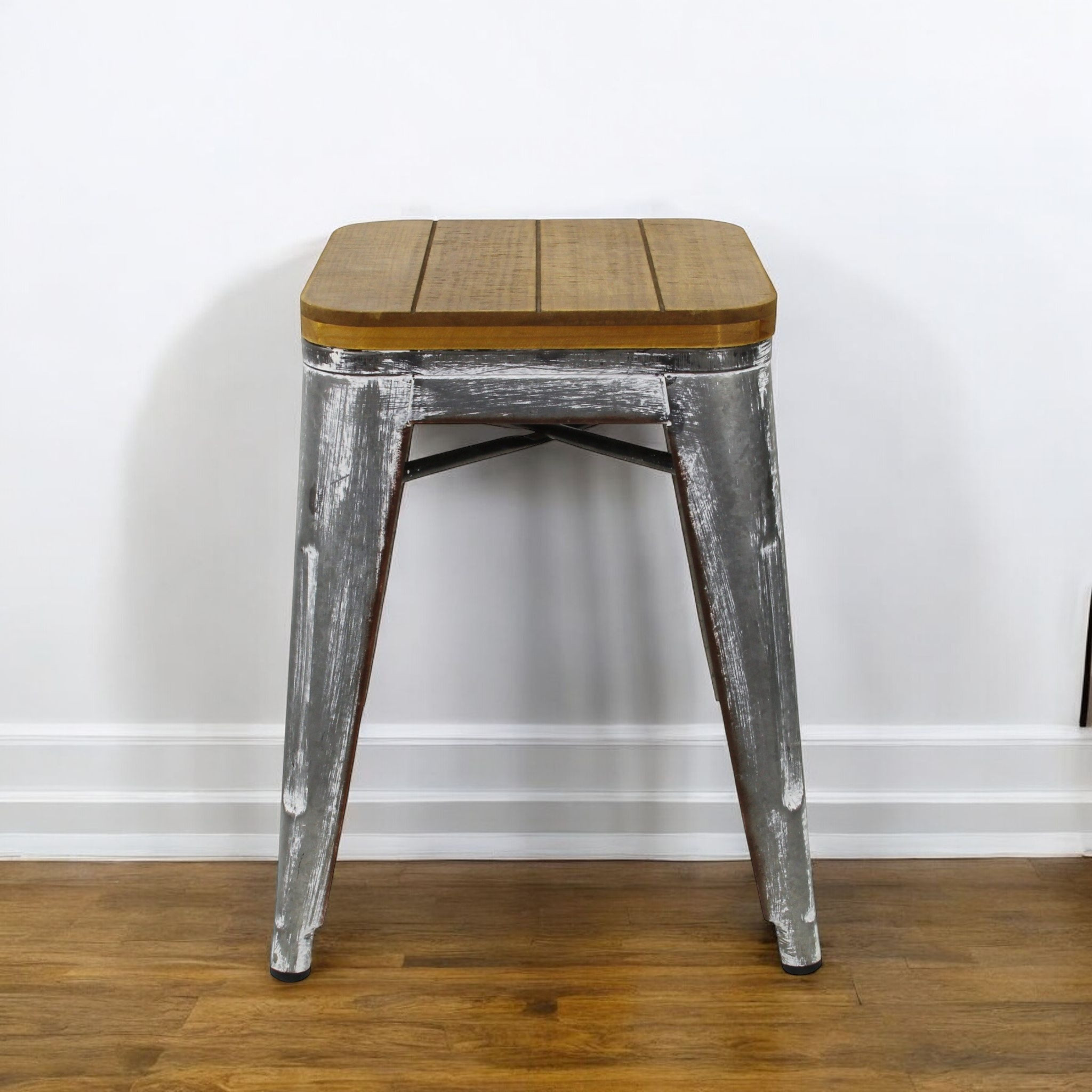 galvanized metal backless bar chair, metal backless bar chair, gray galvanized metal backless bar, wood brown gray galvanized metal, wood brown gray |