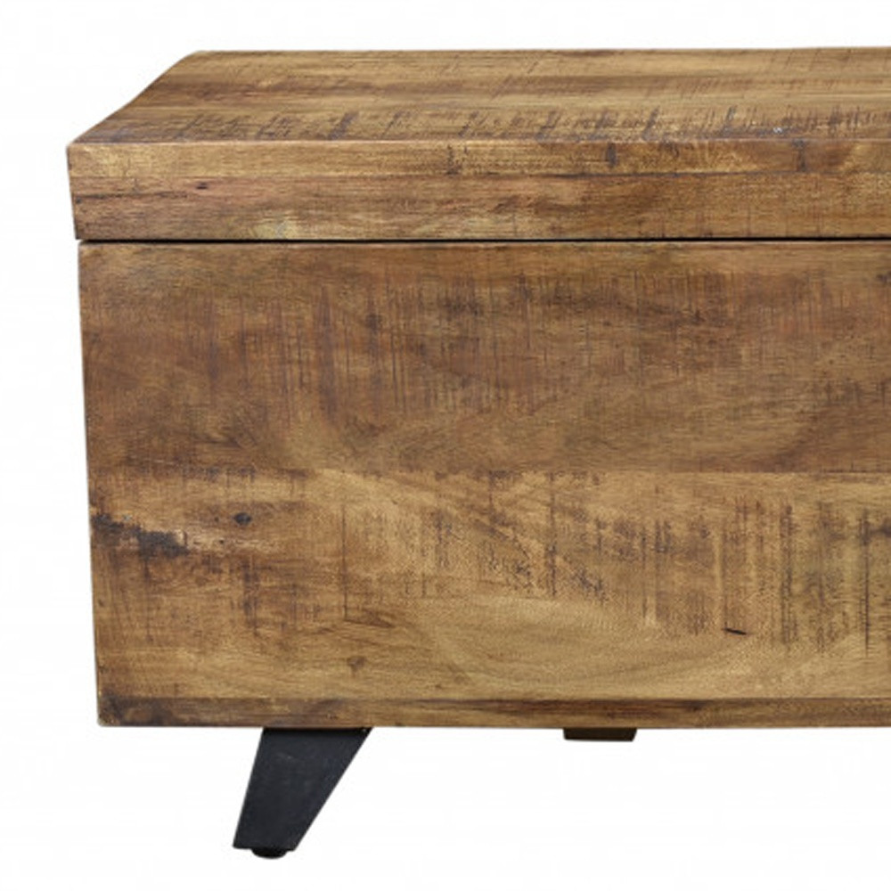 Add a good looking decorative accent to your space that is also practical for seating. The brown solid wood top of this bench is a nice contrast to the high quality, black metal of the base. Complete with a purposefully distressed finish, this bench has an aged, vintage, and rustic feel. A convenient flip top gives this bench multi-functionality to house hidden storage to help keep your space neat and tidy. Ideal for entrance foyer, hallway, or laundry room. This bench is a great place store your keys, put on your shoes, or be a catchall on your way in or out. Benches don't have to be unsightly. Increase your seating and the fashion quotient of your room all at the same time with this hard wearing, versatile, and good looking bench. 17-inch h x 46-inch w x 15-inch d