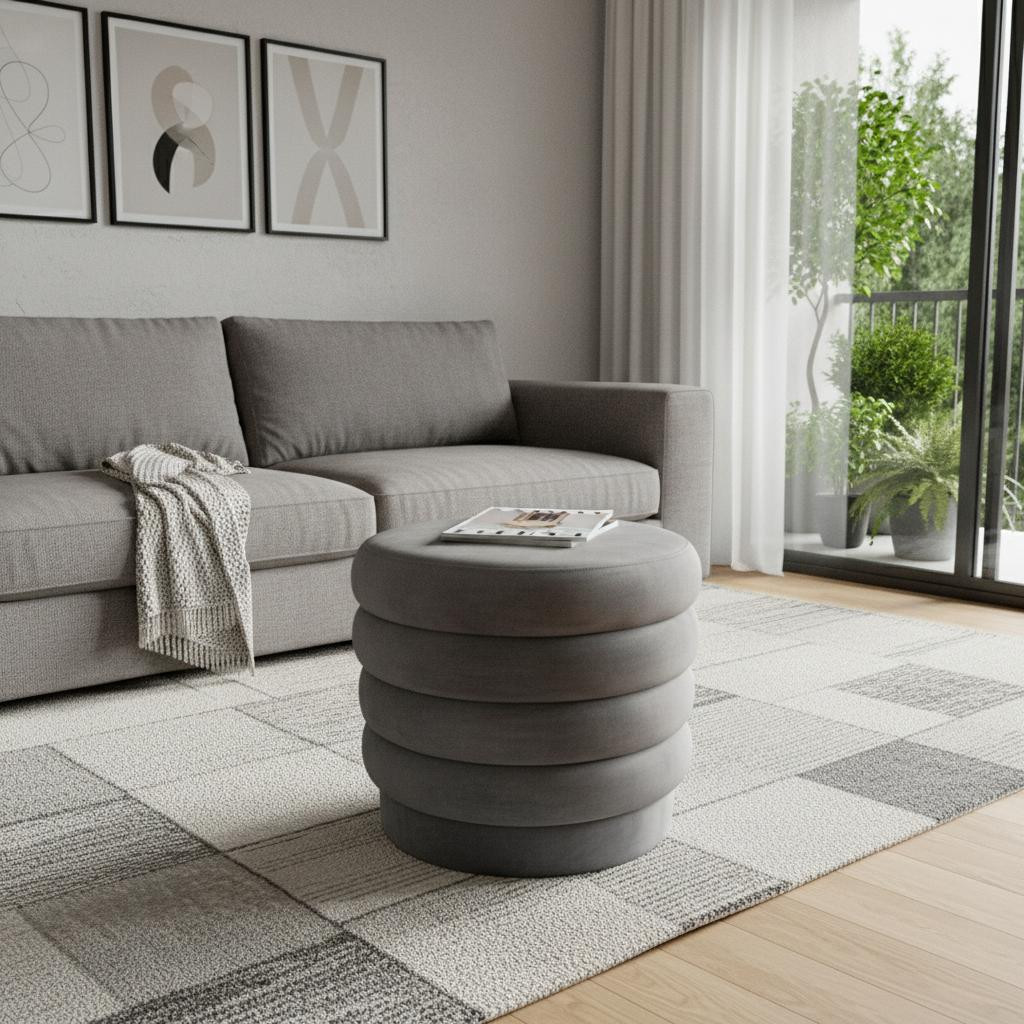 velvet tufted round cocktail ottoman, tufted round cocktail ottoman, round cocktail ottoman, gray velvet tufted round cocktail, 21" gray velvet tufted round |