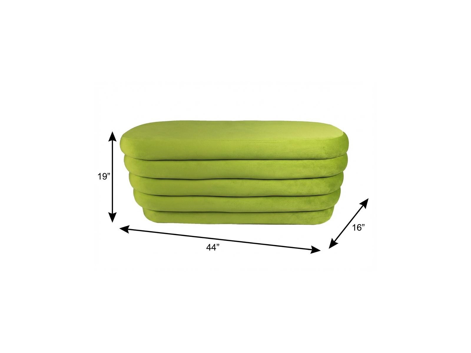 Add a good looking decorative accent to your space that is also practical for seating. Expertly upholstered with padding in a soft solid color velvet, this ottoman is as comfortable as it is good looking. Easy to blend into most any room, a ottoman is a way to add a good looking accent to your space that can also be practical and useful. . 19" H x 44" W x 16" D