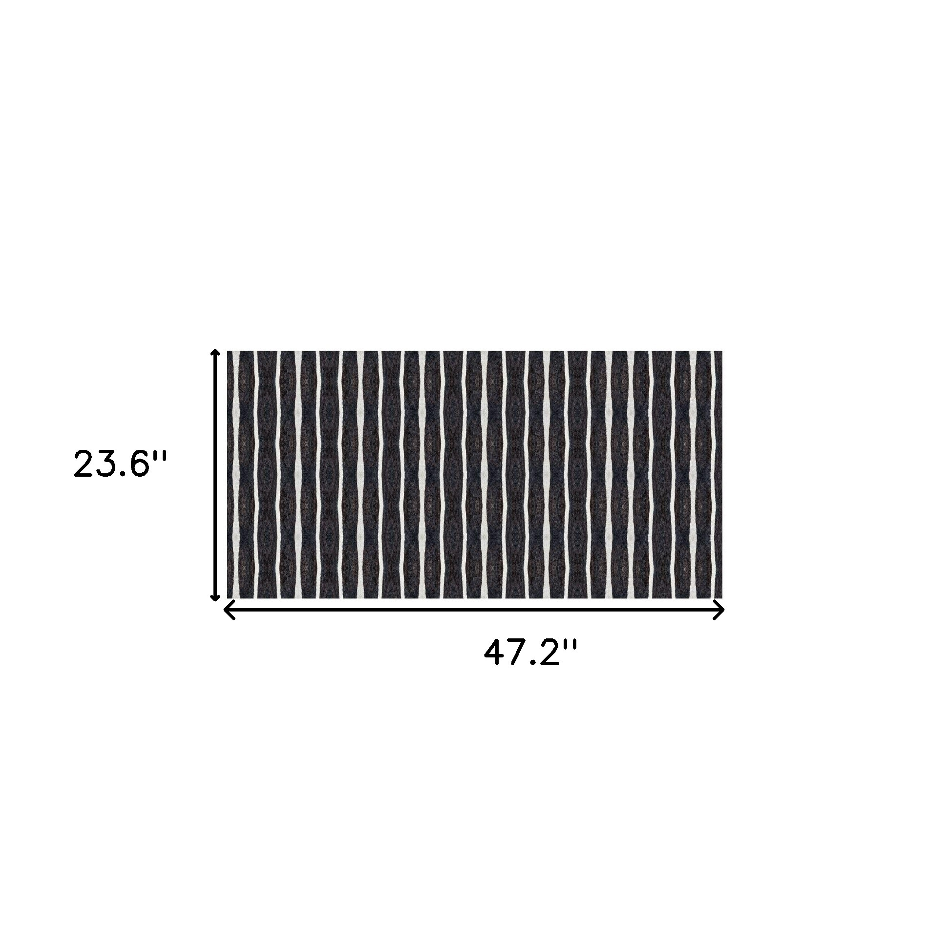 Add great coloration and comfortable texture to your space with this 2' x 4' black and white modern stripe printed vinyl area rug with UV protection. This rectangle shaped rug features a geometric and striped design in black and white to give it visual interest. A classic shape marries with good looking design for your space The coloration and design of this rug infuses an updated and modern vibe into your space. Ideal for spaces with kids and pets, this mat is stain resistant to help repel stains and spilled liquids. This vinyl mat brings a fresh casual vibe to your space, is easy to clean, and is built to last. 0.08" H x 23.6" W x 47.2" D