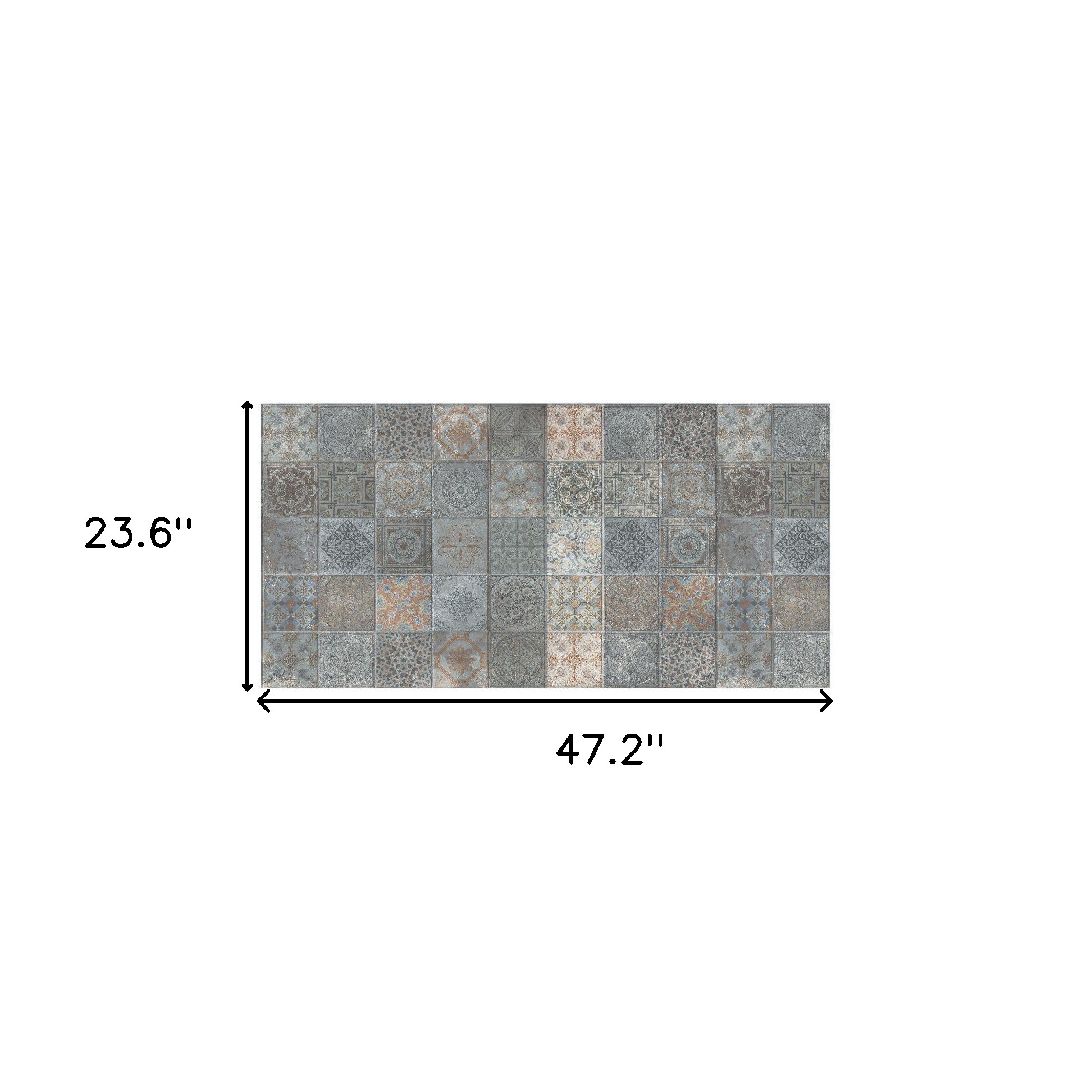 Add great coloration and comfortable texture to your space with this 2' x 4 brown and gray mosaic tile printed vinyl area rug with UV protection. This rectangle shaped rug features an authentic looking vintage mosaic tile print in brown and gray to give it visual interest. A classic shape marries with good looking design for your space Ideal for spaces with kids and pets, this rug is stain resistant to help repel stains and spilled liquids. This vinyl mat is casual, easy to clean, and is built to last. This distressed look tile design printed floor mat will help to give warmth and sense of home to your space. 0.08" H x 23.6" W x 47.2" D