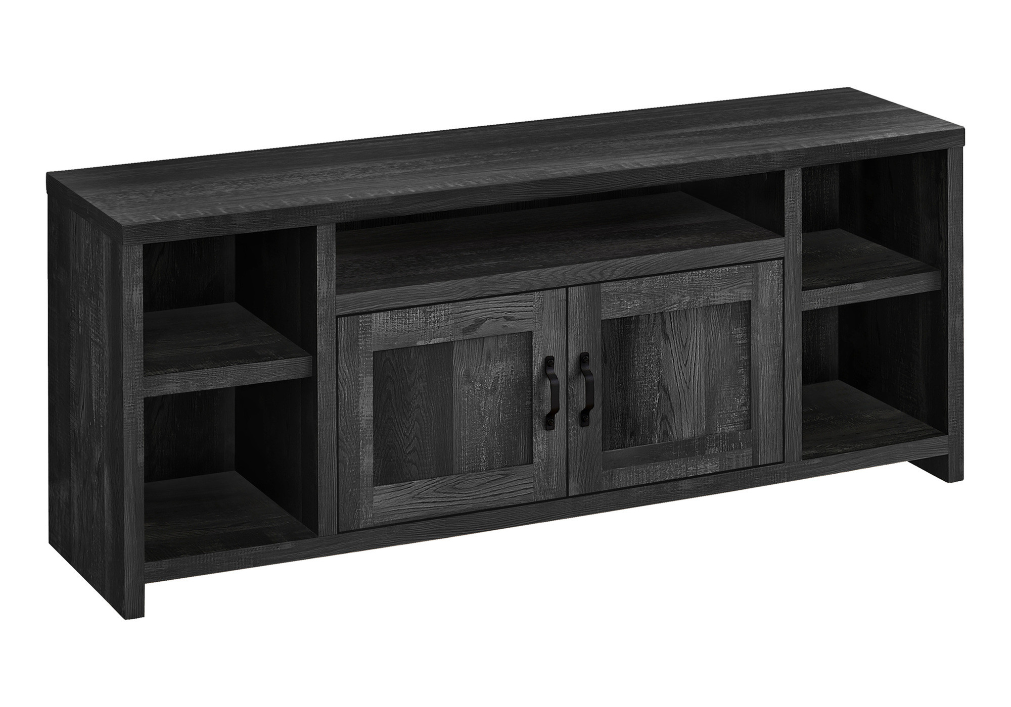 Experience entertainment right in the comfort of your own home with the 59-inch black cabinet enclosed storage tv stand. To add to the versatility, this piece features open non-concealed storage that can be used for not only storage but display as well. Ideal for tv placement and storage in your living room, bedroom or office. 23.75-inch H x 59-inch W x 15.5-inch D
