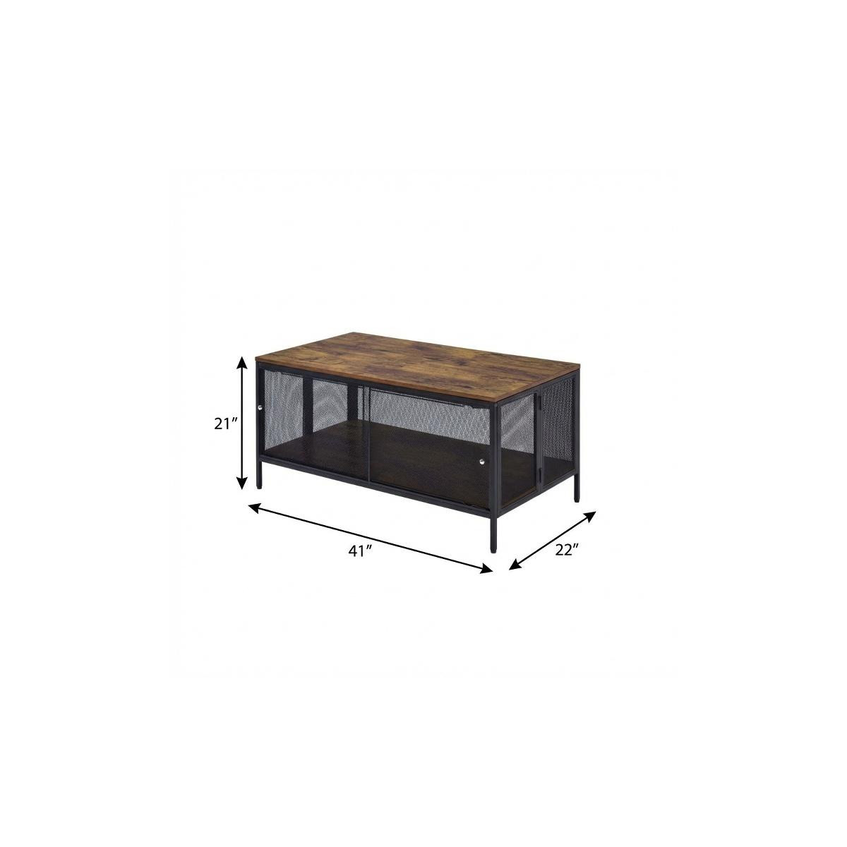 wood metal frame coffee table, metal frame coffee table shelf, coffee table shelf, frame coffee table shelf, 41" brown black wood |