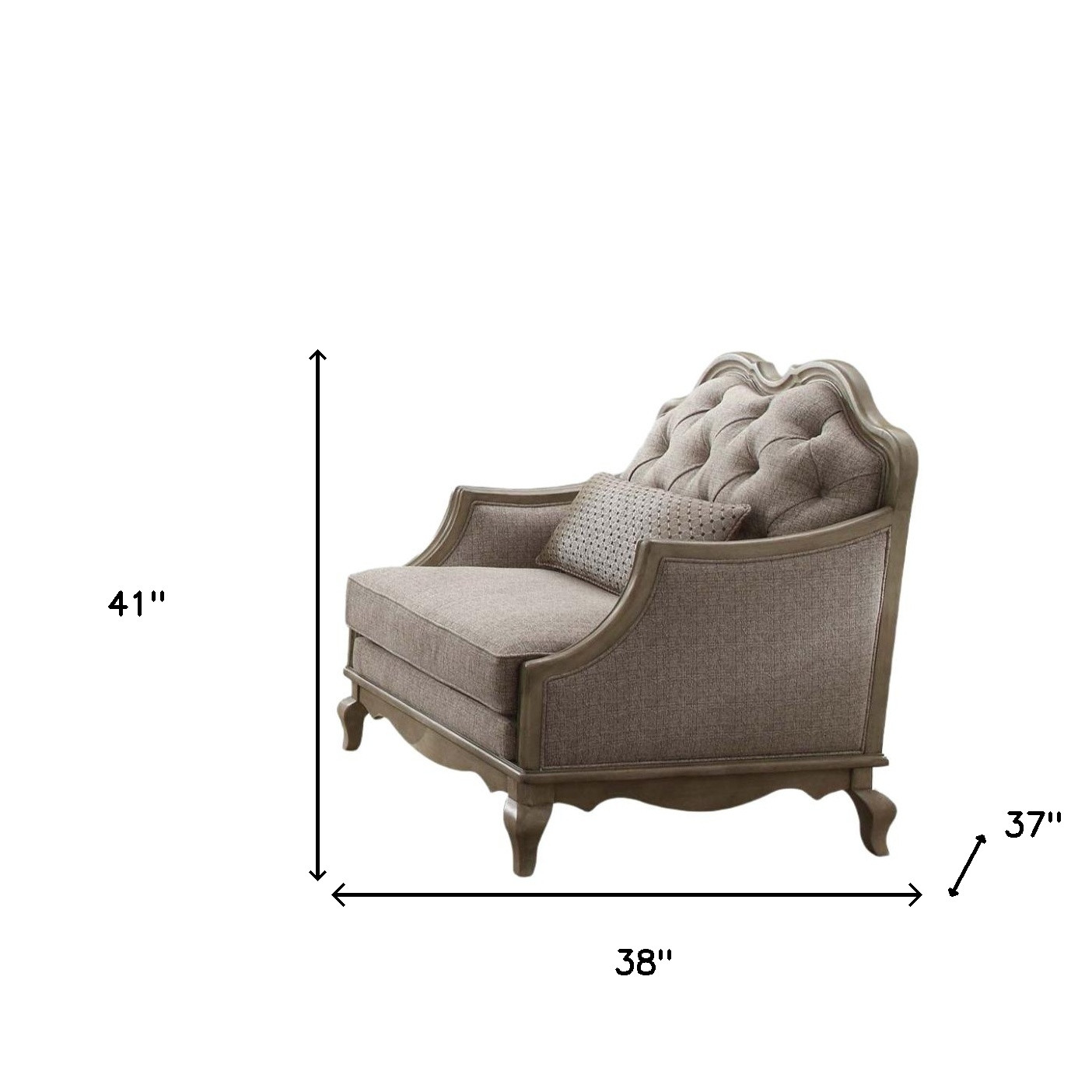 beige taupe fabric tufted chair, tufted chair half toss pillow, fabric tufted chair half, taupe fabric tufted chair half, fabric tufted chair half toss |
