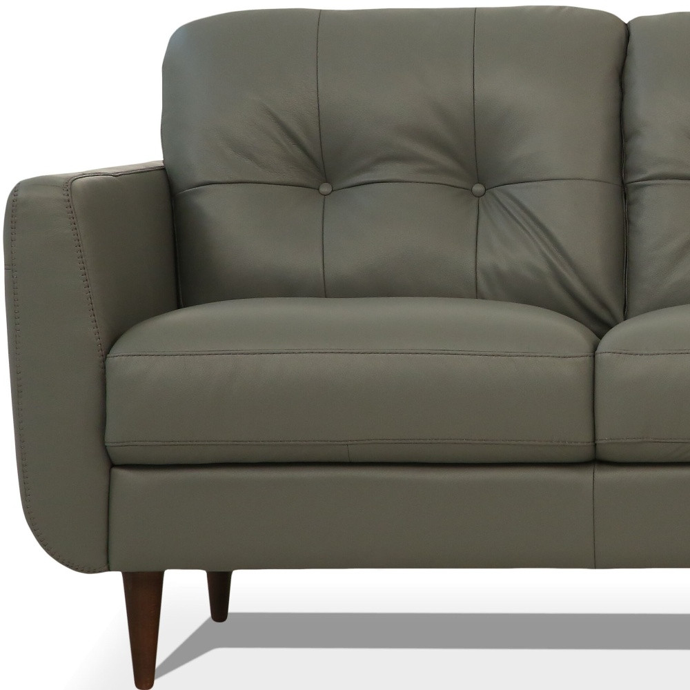 An interior designer's dream, this buttery soft high grade leather 83-inch green leather sofa with black legs will bring just the right touch to your space. The premium leather used makes your lounging luxuriously comfortable and adds an elegant appeal to your space. Solid colors give you lots of decorative options and are easy to work into your decor scheme. Sinuous springs construction gives this piece strong support and makes it comfortable to sit even for long periods of time. Square arms offer a comfy place to rest. The tufted stitching pattern adds visual interest and fine designer detailing. Built to last, this sofa will be a great centerpiece for your room. 36-inch H x 83-inch W x 37-inch D