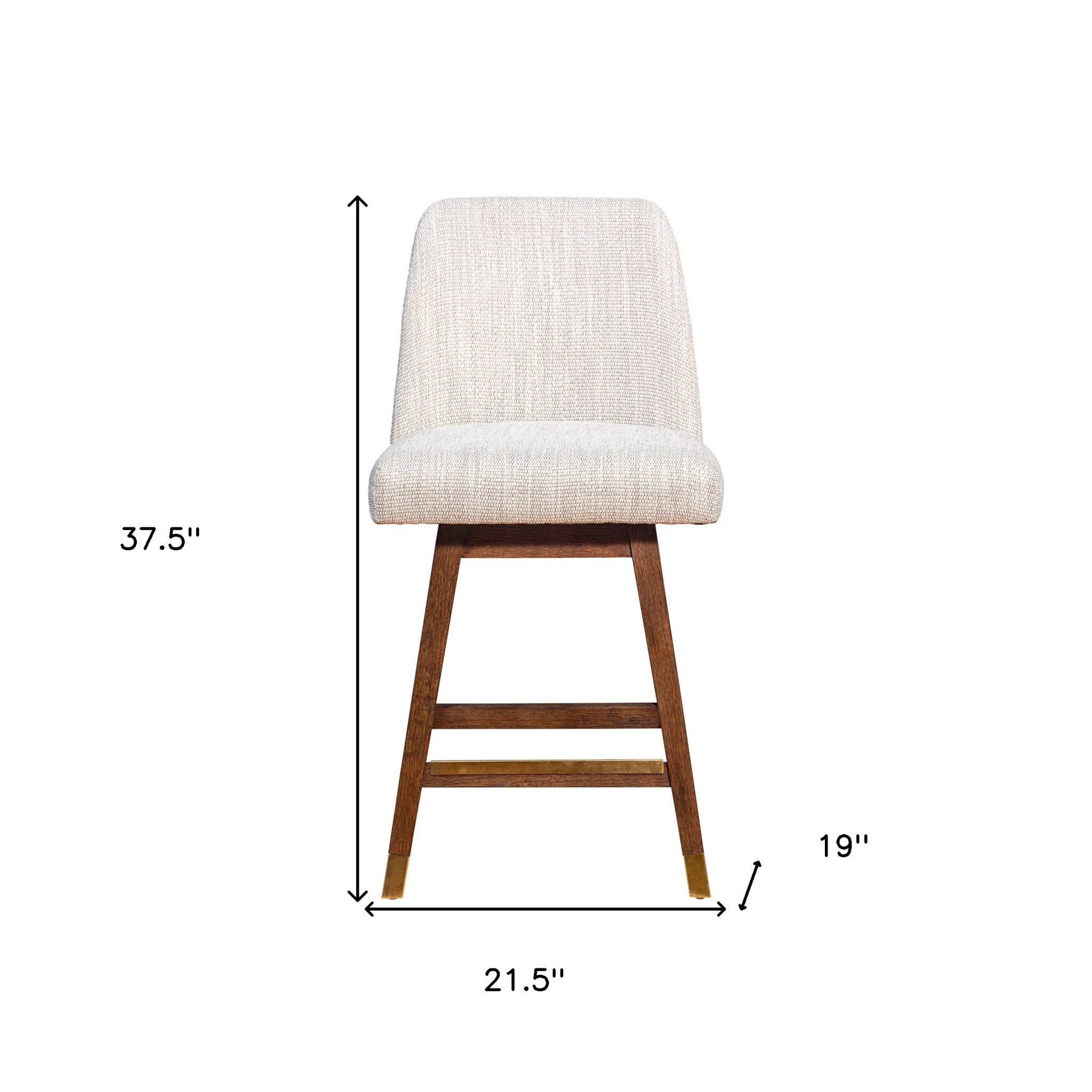 This beige and brown solid wood swivel counter height bar chair will be the perfect way to add some cool design and utility to your space similar to what you find in your favorite cafes or pubs. The beige upholstered seat of this stool is a nice contrast to the high quality, brown solid wood of the base. 37.5-inch H x 21.5-inch W x 19-inch D