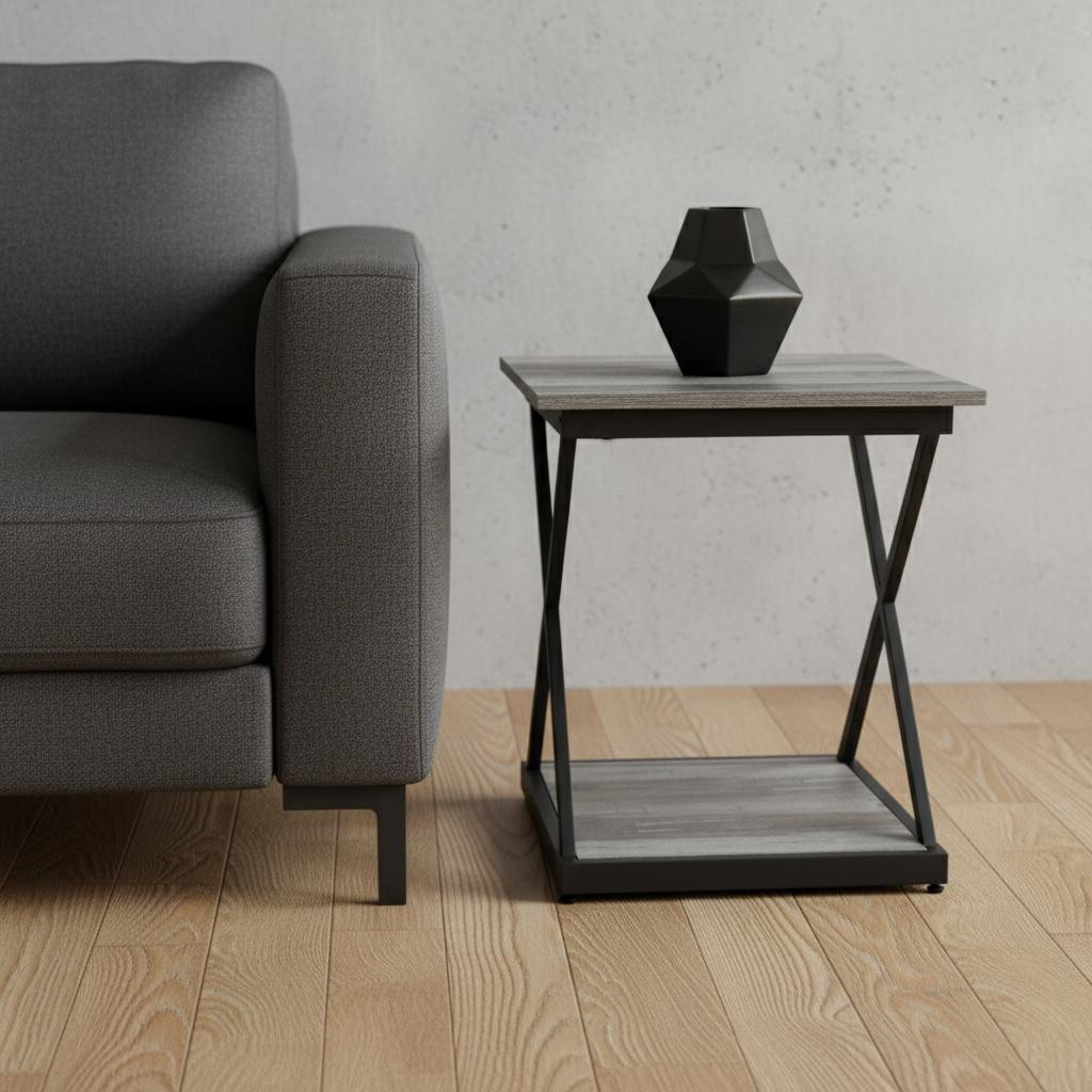 Optimize your space and add some charm to your room with the 20" black and brown manufactured wood square end table. The base of this table is made from iron in a black color that is a nice contrast to the brown manufactured wood tabletop. A great accent on either side of the sofa or bed, this adorable end or side table is just what you need. You can match it with other pieces to get the ideal look for your place. 19.68" H x 18.5" W x 18.5" D