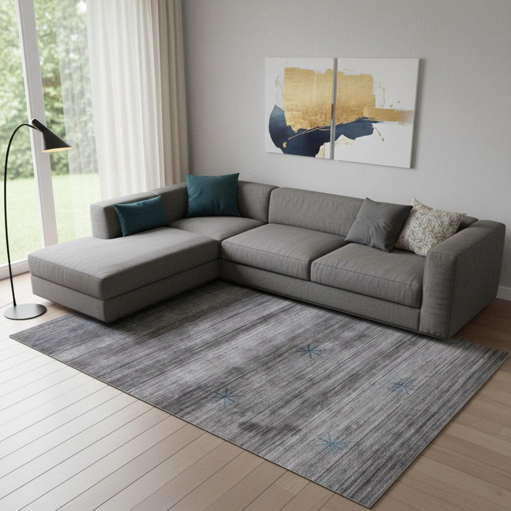 Set an inviting tone in your space with this 8' x 11' silver and blue ombre hand loomed area rug. This rectangle shaped rug features a ombre design in silver and blue to give it visual interest. A classic shape marries with good looking design for your space Crafted by skilled artisans, this hand loomed rug is genuine and unique. No two will be exactly alike. Area Rugs help to give warmth and sense of home to your space. 0.5" H x 127" W x 94" D