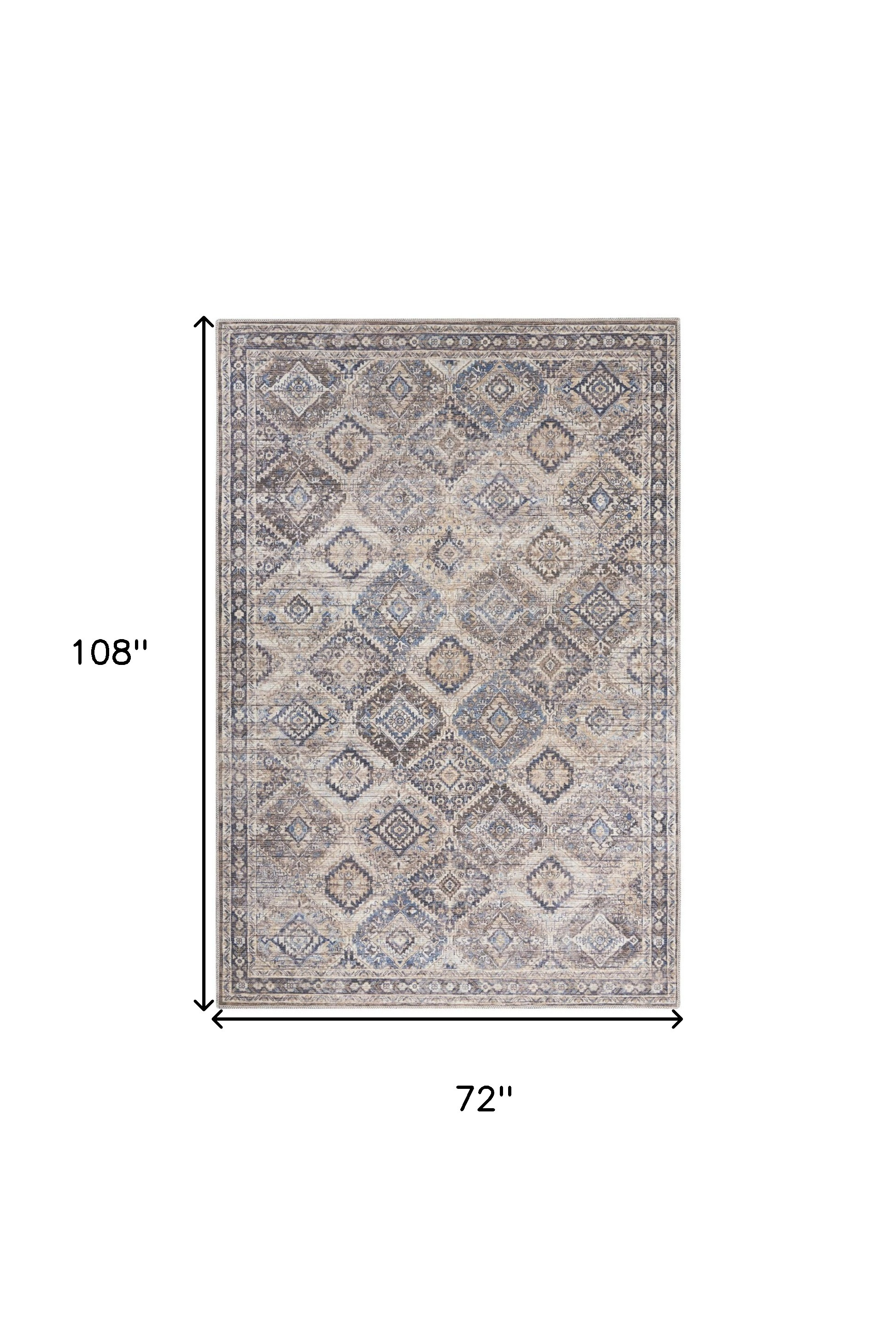 This 6' x 9' ivory and latte medallion distressed washable area rug, is a great way to add warmth to a room. This rectangle shaped rug features a medallion design in ivory and latte to give it visual interest. A classic shape marries with good looking design for your space Made in Turkey, this rug offers high quality combined with good looking designer sensibilities. Ideal for spaces with kids and pets, this rug is stain resistant to help repel stains and spilled liquids. Area Rugs help to give warmth and sense of home to your space. 0.28" H x 108" W x 72" D