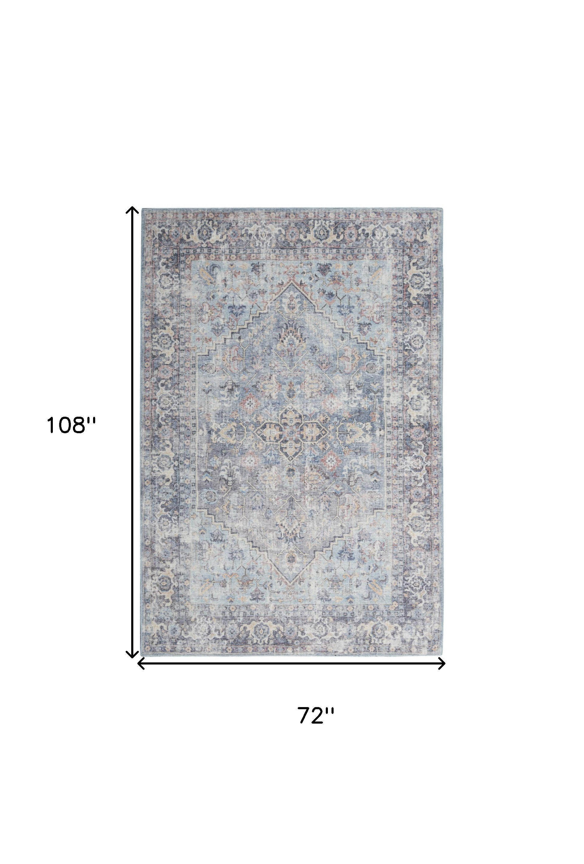 Add some artistry to your room with this 6' x 9' light grey and blue medallion distressed washable area rug. This rectangle shaped rug features a medallion design in light grey and blue to give it visual interest. A classic shape marries with good looking design for your space This superior Turkish rug represents the highest quality and is built to last. Ideal for spaces with kids and pets, this rug is stain resistant to help repel stains and spilled liquids. Place this area rug against a hardwood or tile floor and it will enliven your living space with style and sophistication. 0.28" H x 108" W x 72" D