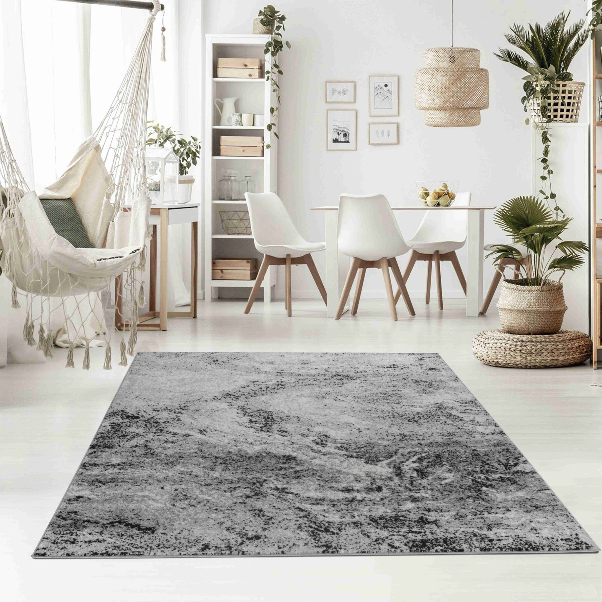 Add some artistry to your room with this 4-foot x 6-foot gray and black abstract distressed area rug. Ideal for spaces with kids and pets, this rug is stain resistant to help repel dirt and spilled liquids. Built to last, this rug crafted from polypropylene fibers is known for its durability and long lasting appeal. Rugs are a great way to showcase your style, hide imperfections, warm your home and reduce noise. 47-inch h x 67-inch w x 0.3-inch d.