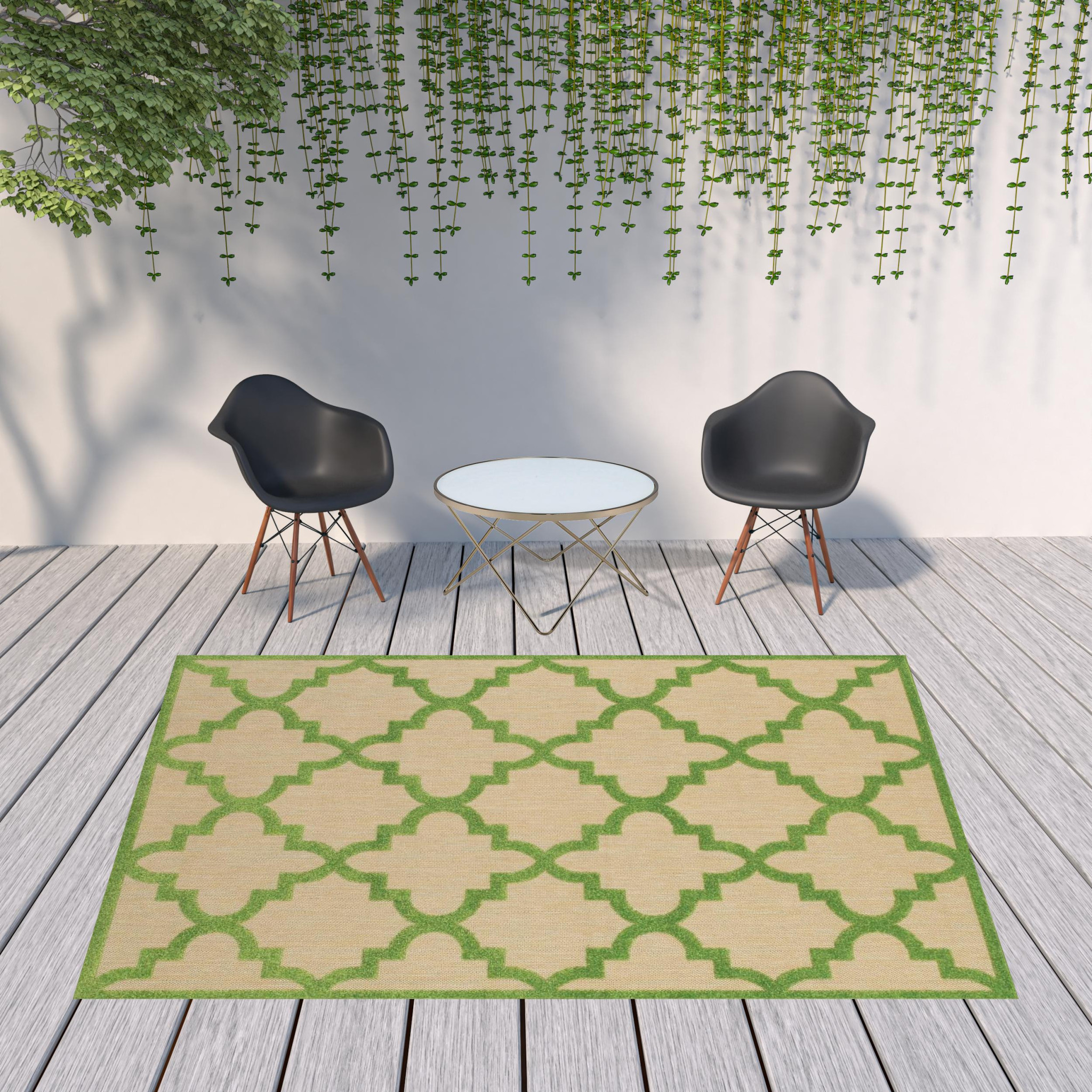 Add great coloration and comfortable texture to your space with this 8-foot x 11-foot green geometric stain resistant indoor outdoor area rug. This rectangle shaped rug features a geometric design in green to give it visual interest. A classic shape marries with good looking design for your space Ideal for spaces with kids and pets, this rug is stain resistant to help repel stains and spilled liquids. Area Rugs help to give warmth and sense of home to your space. 0.07-inch H x 94.49-inch W x 129.92-inch D