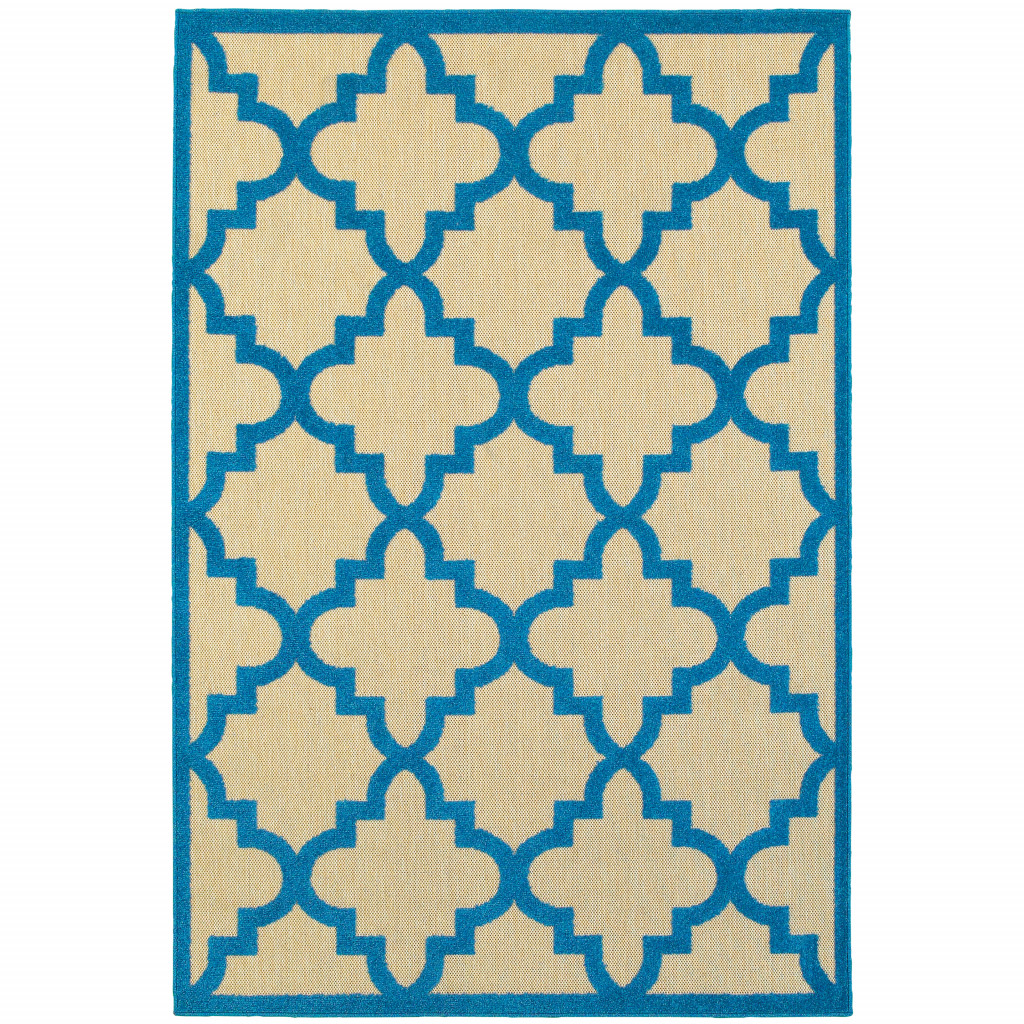 This 7-foot x 10-foot blue and beige geometric stain resistant indoor outdoor area rug, is a great way to add warmth to a room. This rectangle shaped rug features a geometric design in blue and beige to give it visual interest. A classic shape marries with good looking design for your space Ideal for spaces with kids and pets, this rug is stain resistant to help repel stains and spilled liquids. Place this area rug against a hardwood or tile floor and it will enliven your living space with style and sophistication. 0.07-inch H x 78.74-inch W x 114.17-inch D