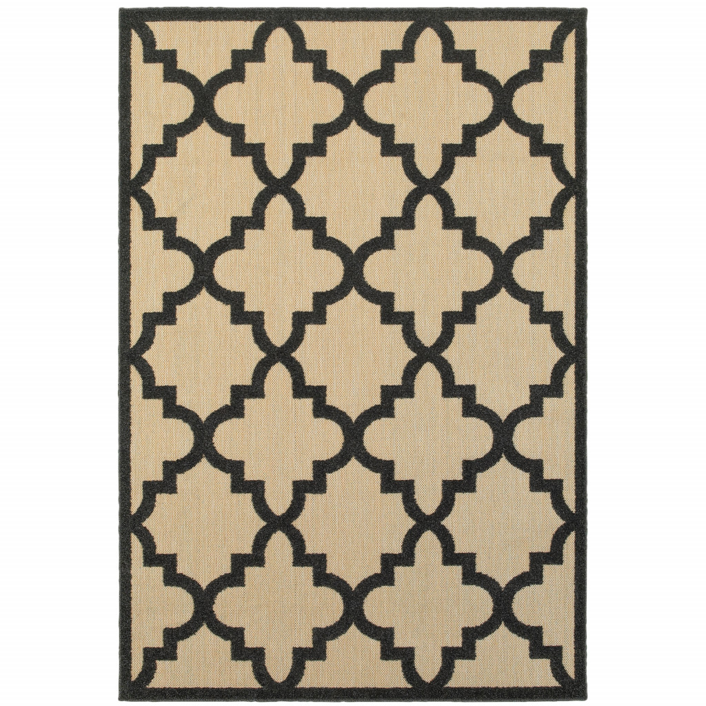 Set an inviting tone in your space with this 7-foot x 10-foot beige and black geometric stain resistant indoor outdoor area rug. This rectangle shaped rug features a geometric design in beige and black to give it visual interest. A classic shape marries with good looking design for your space Ideal for spaces with kids and pets, this rug is stain resistant to help repel stains and spilled liquids. Place this area rug against a hardwood or tile floor and it will enliven your living space with style and sophistication. 0.07-inch H x 78.74-inch W x 114.17-inch D