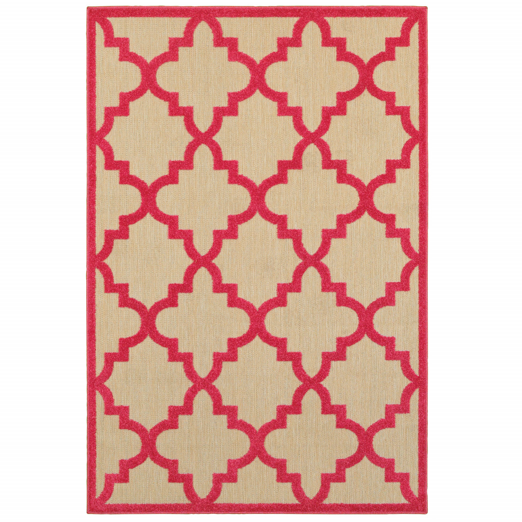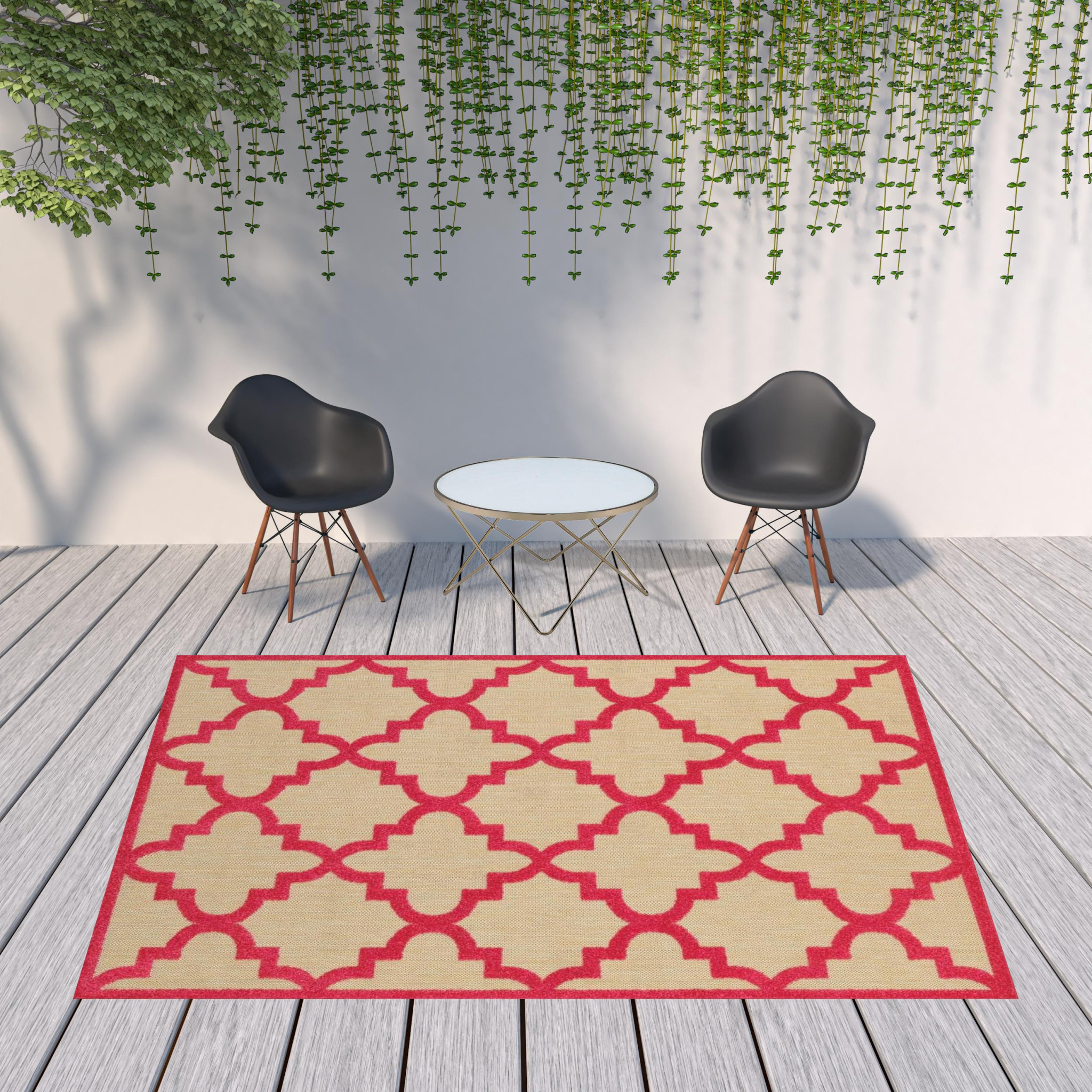 Add some artistry to your room with this 8-foot x 11-foot red geometric stain resistant indoor outdoor area rug. This rectangle shaped rug features a geometric design in red to give it visual interest. A classic shape marries with good looking design for your space Ideal for spaces with kids and pets, this rug is stain resistant to help repel stains and spilled liquids. Place this area rug against a hardwood or tile floor and it will enliven your living space with style and sophistication. 0.07-inch H x 94.49-inch W x 129.92-inch D